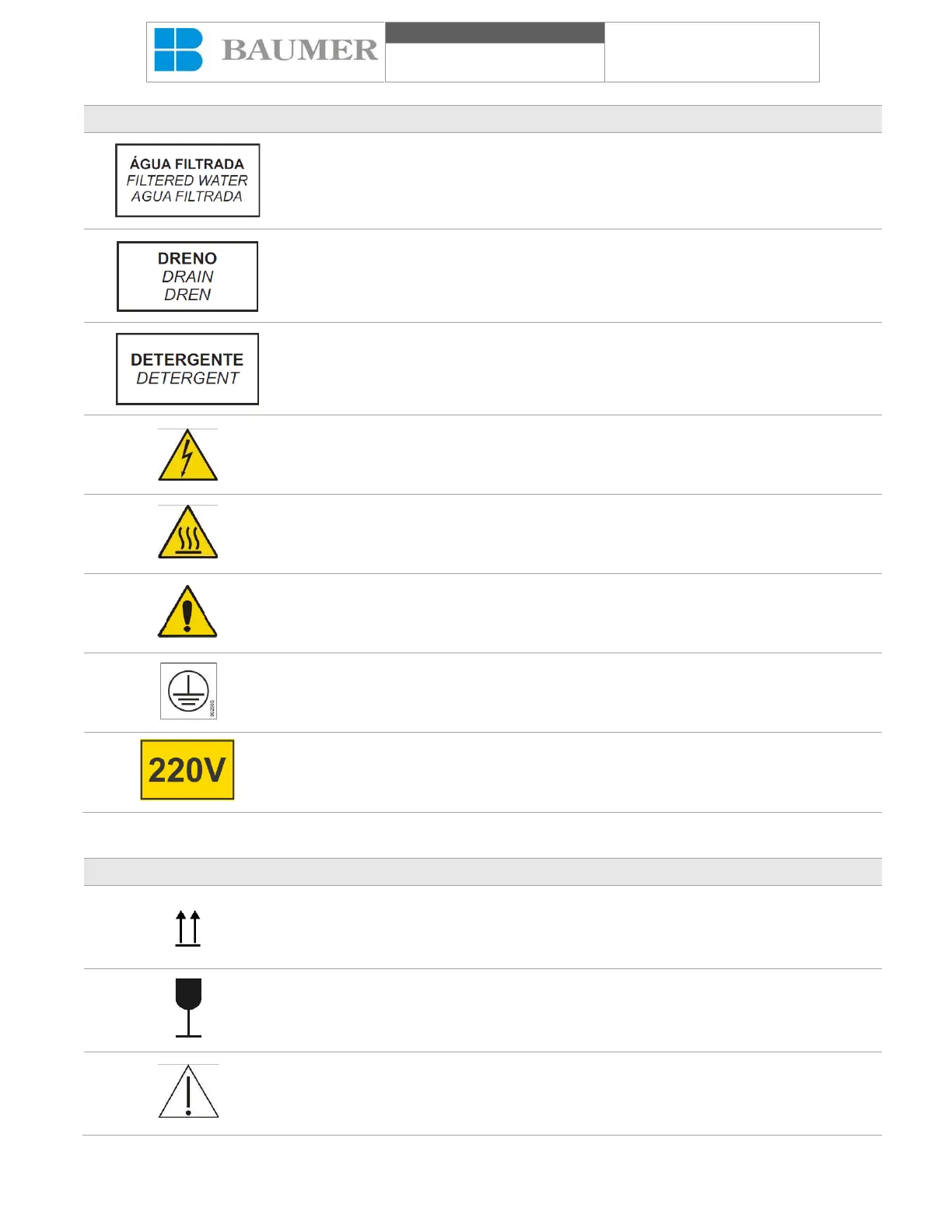 Simbología utilizada en el embalaje La lavadora ultrasónica E0201: