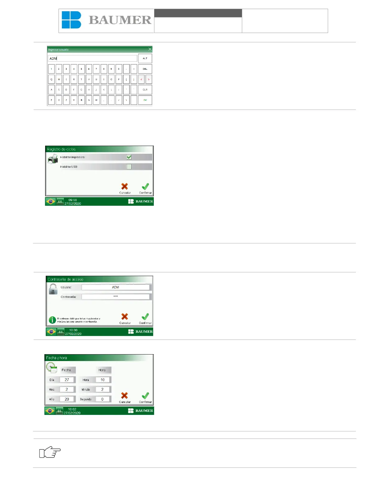 • El ícono o texto "Confirmar" confirma las acciones o cambios