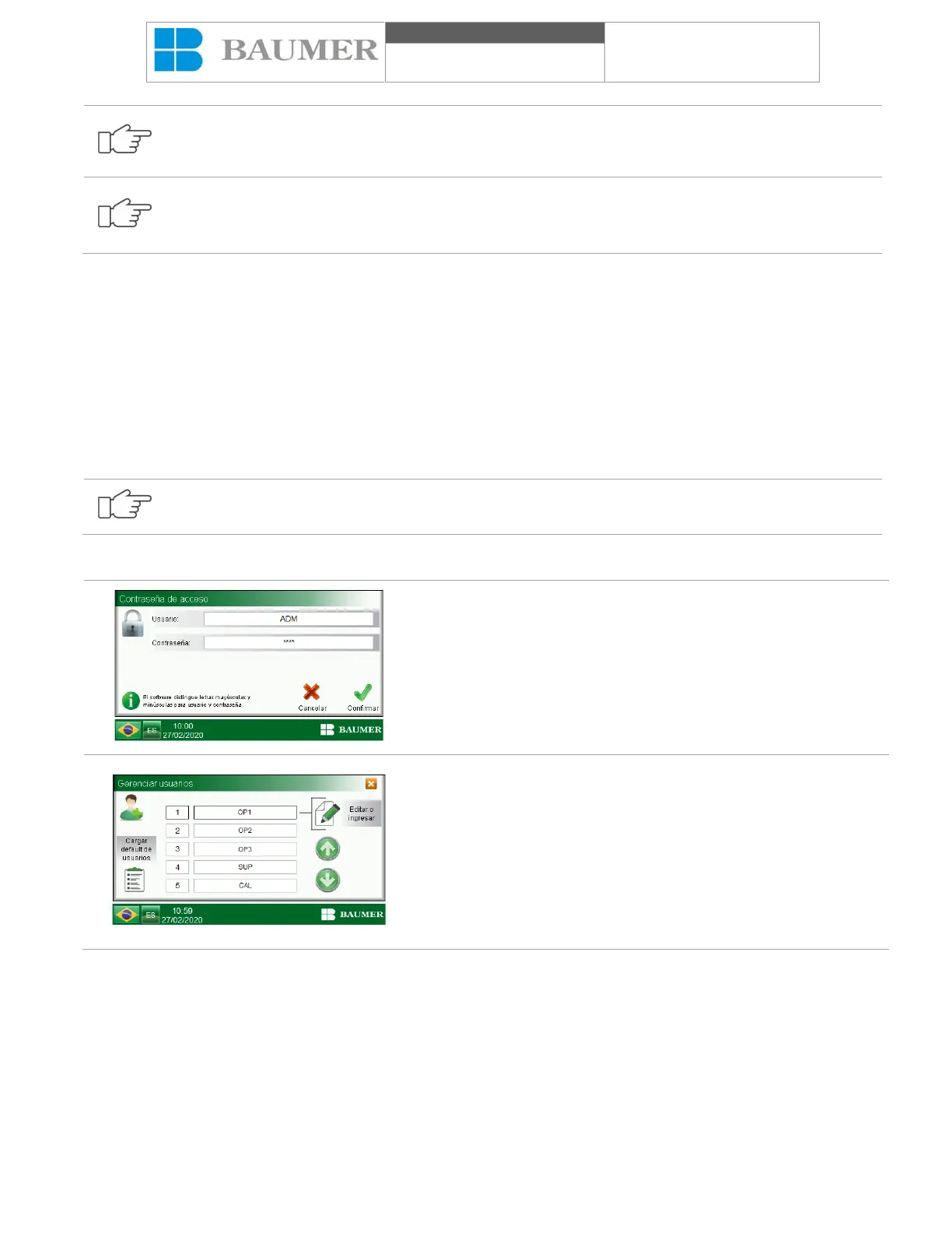 por usuario y contraseña. Es posible registrar hasta 20 usuarios con diferentes niveles de acceso. Al acceder al