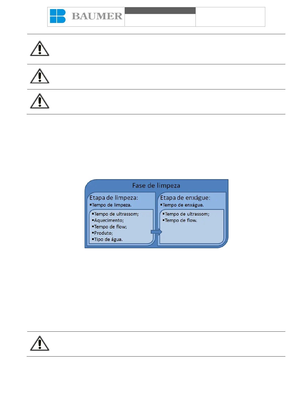 O ciclo poderá ser composto de até 3 fases de limpeza formadas conforme indicado na imagem a seguir: