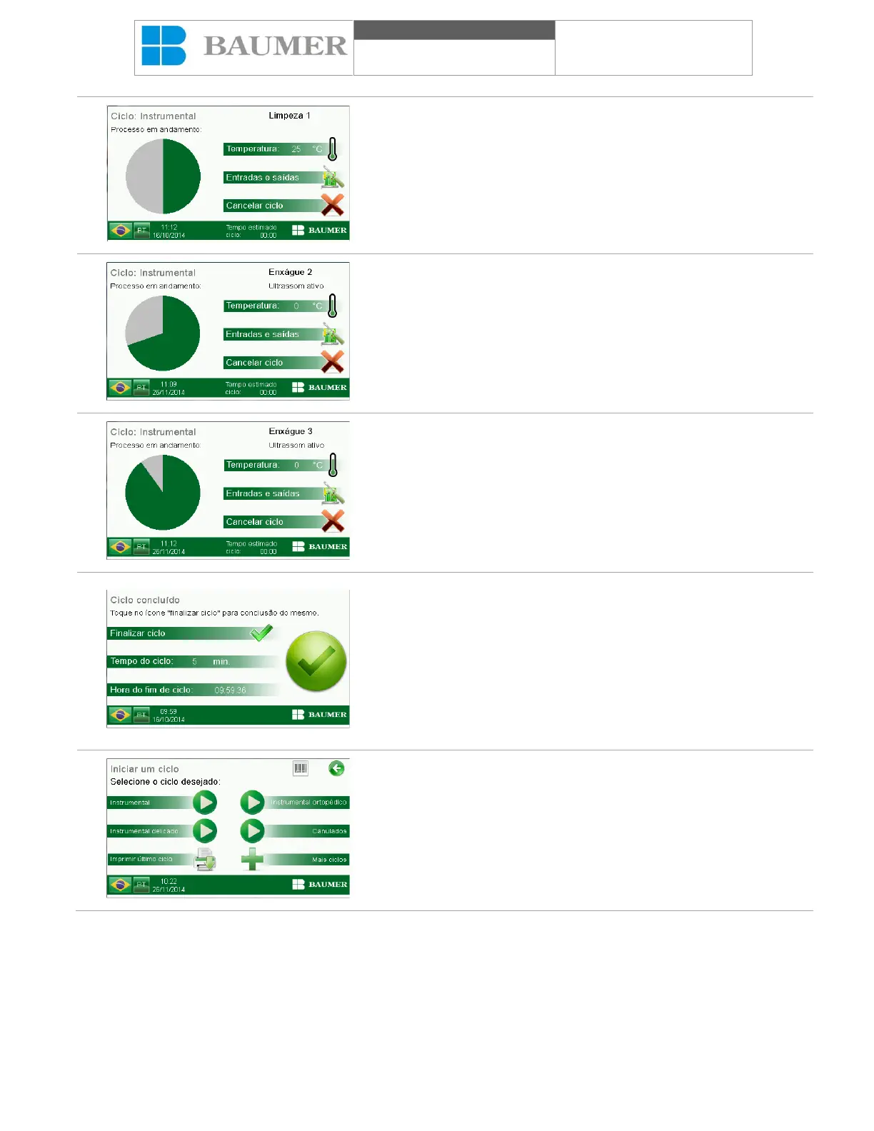 tela “CICLO CONCLUIDO” O “Tempo de ciclo” indica o tempo