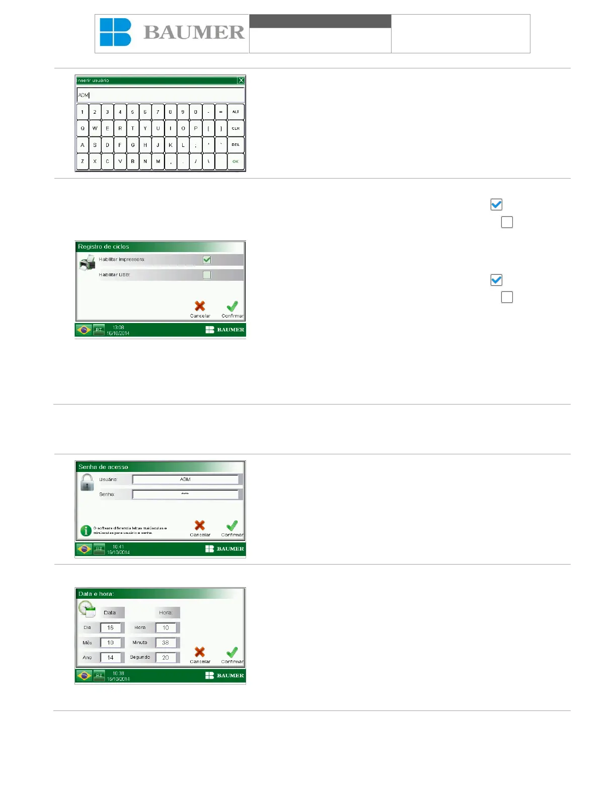 • O ícone ou texto “Confirmar” confirma as ações ou alterações