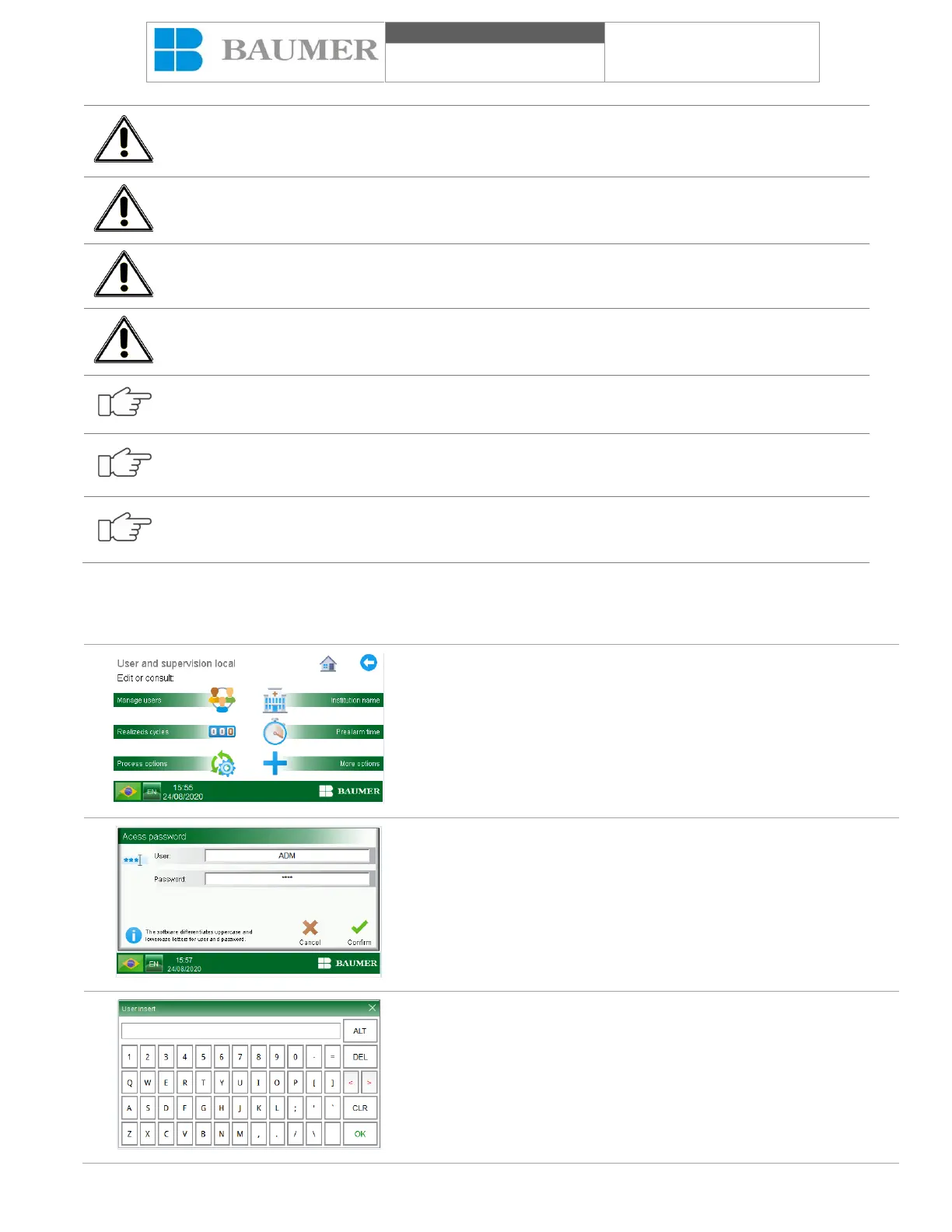 correct functioning of the equipment is not guaranteed if these validations are not confirmed.