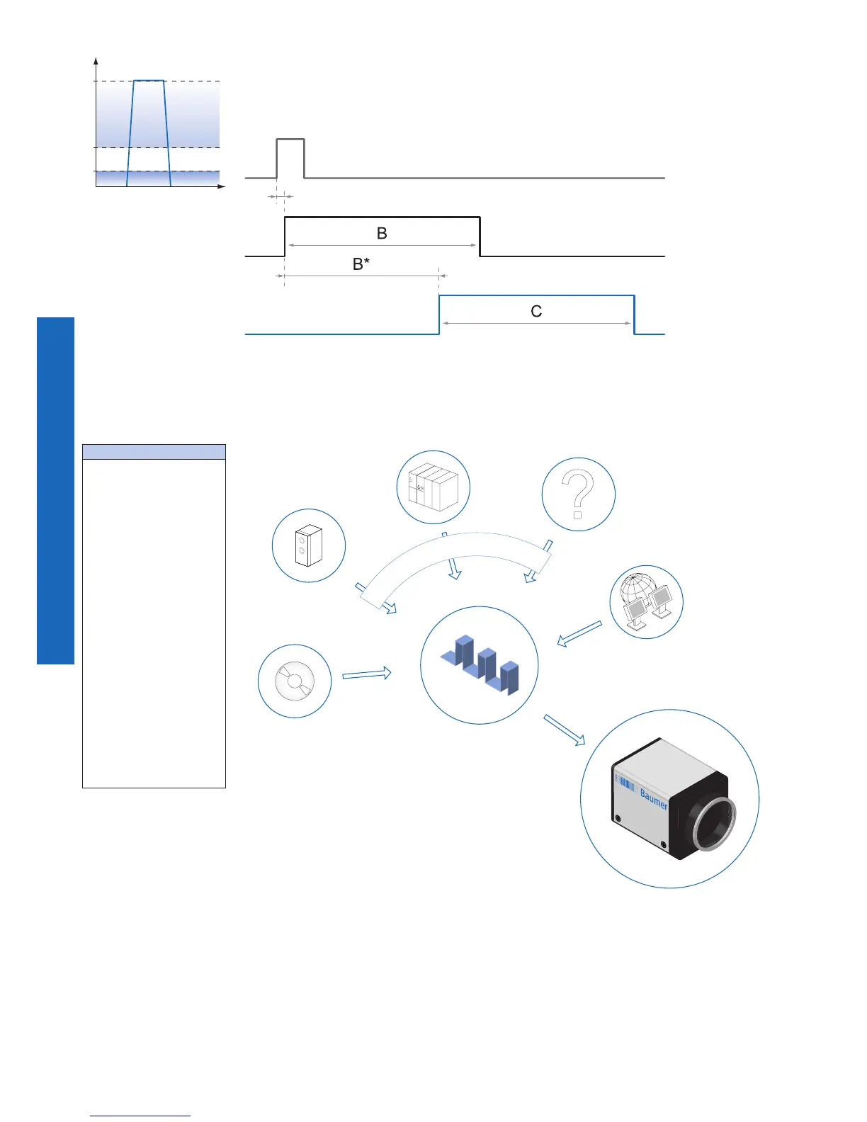 Trigger signals are used to synchronize the camera exposure and a machine cycle or, in