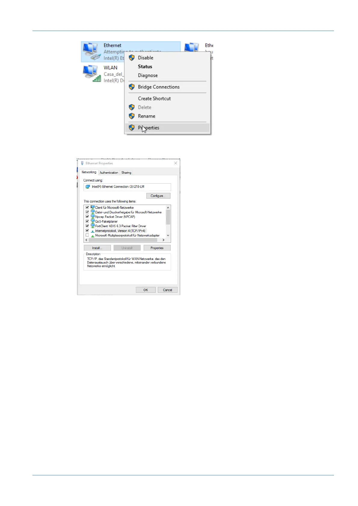 ü Window Properties of Ethernet opens.