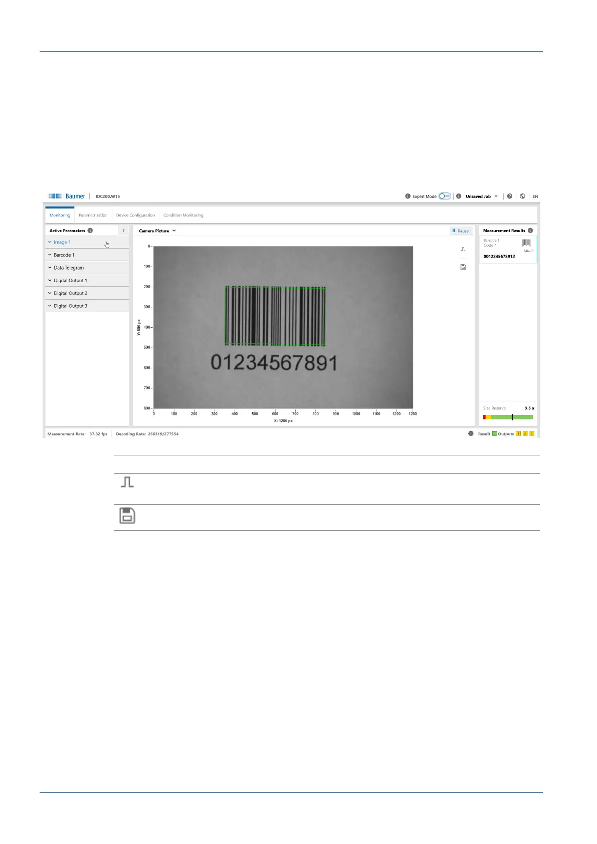 Monitoring shows the current live image of the sensor in the visualization area. If measurement