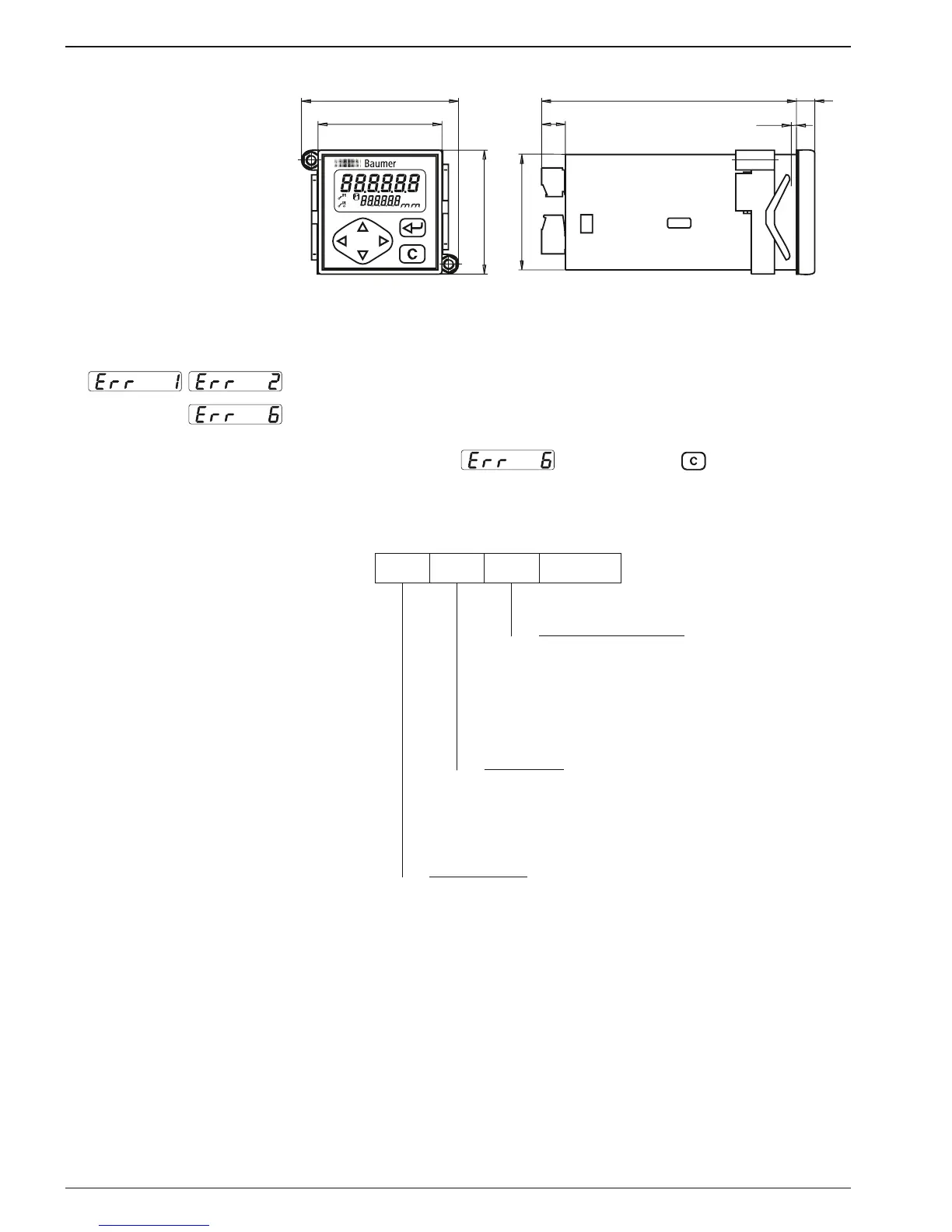 Baumer NE134 - Abmessungen; Fehlermeldungen; Bestellbezeichnung