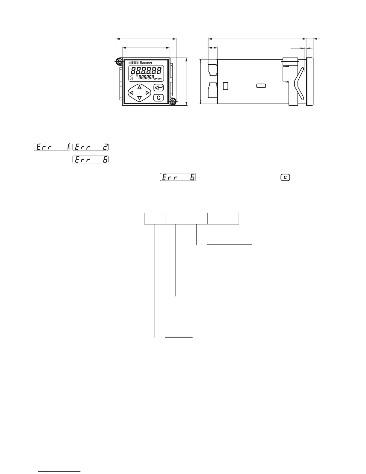 Baumer NE134 - Dimensions; Error Messages; Part Number