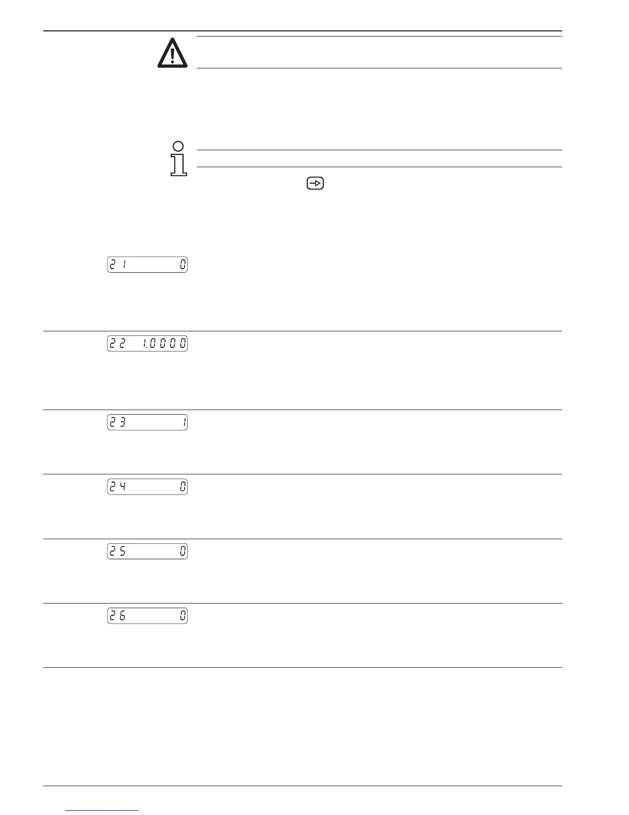 Bei Werksauslieferung ist der Status für alle Betriebsparameter auf