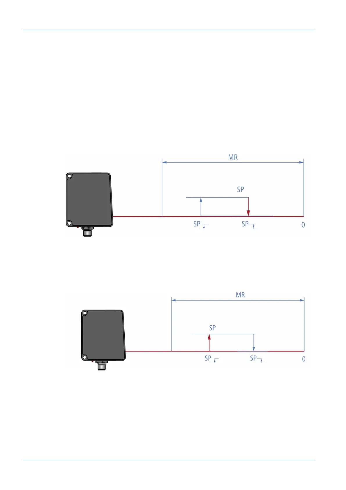 measured values (point mode). With a negative hysteresis, the minimum distance of the switch-