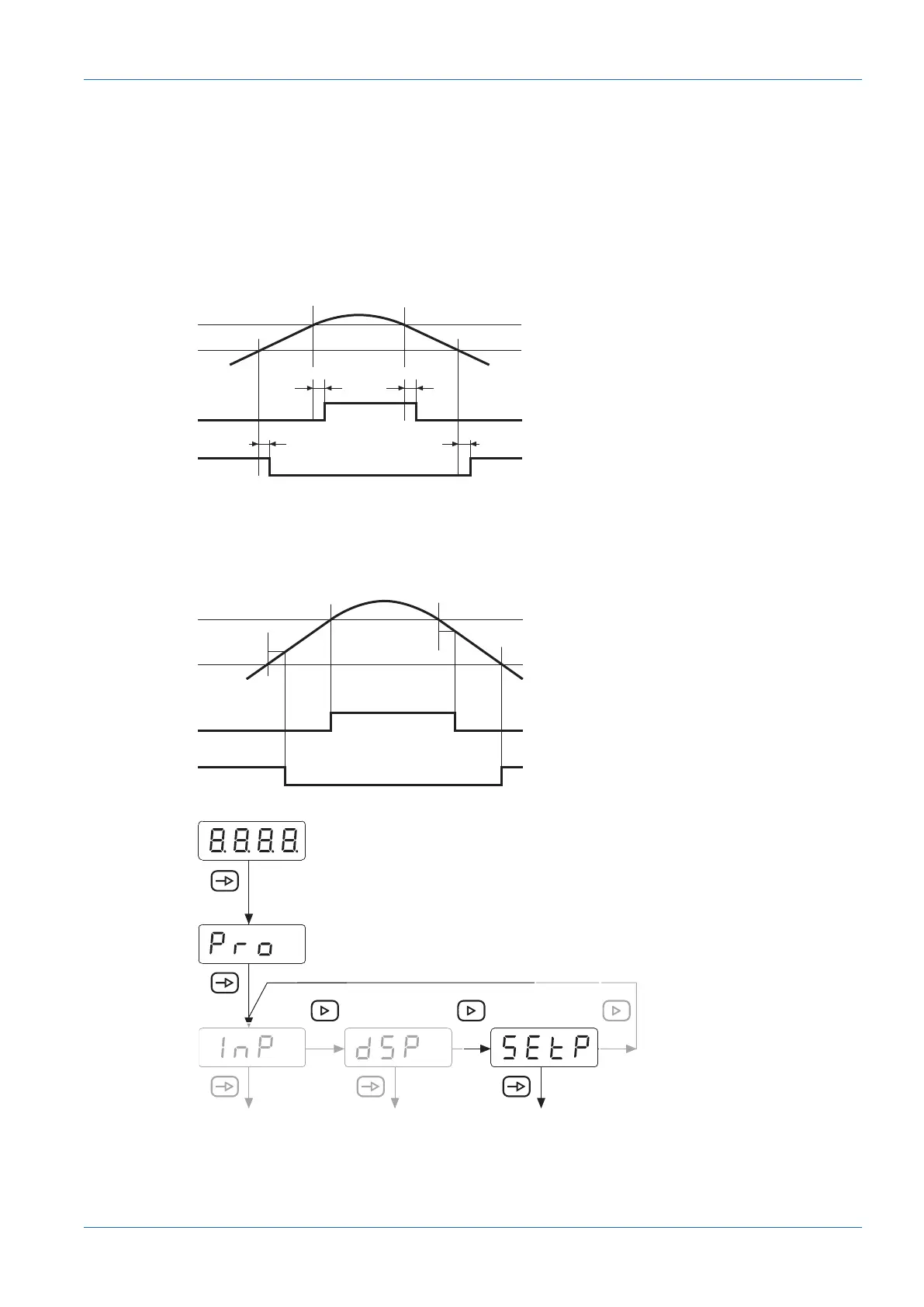 The hysteresis is programmed in display units from 0 to 9999. This only takes effect when the