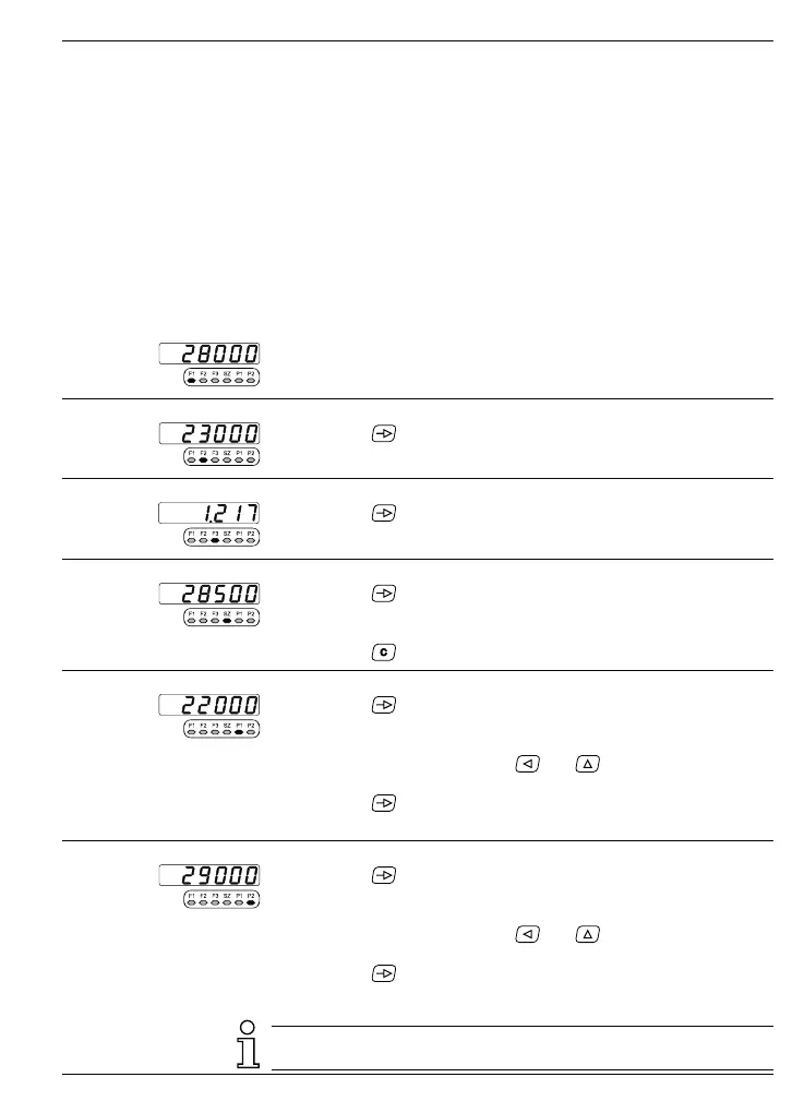 ➜ Enter the limit value P2 using and , sign before the 6th