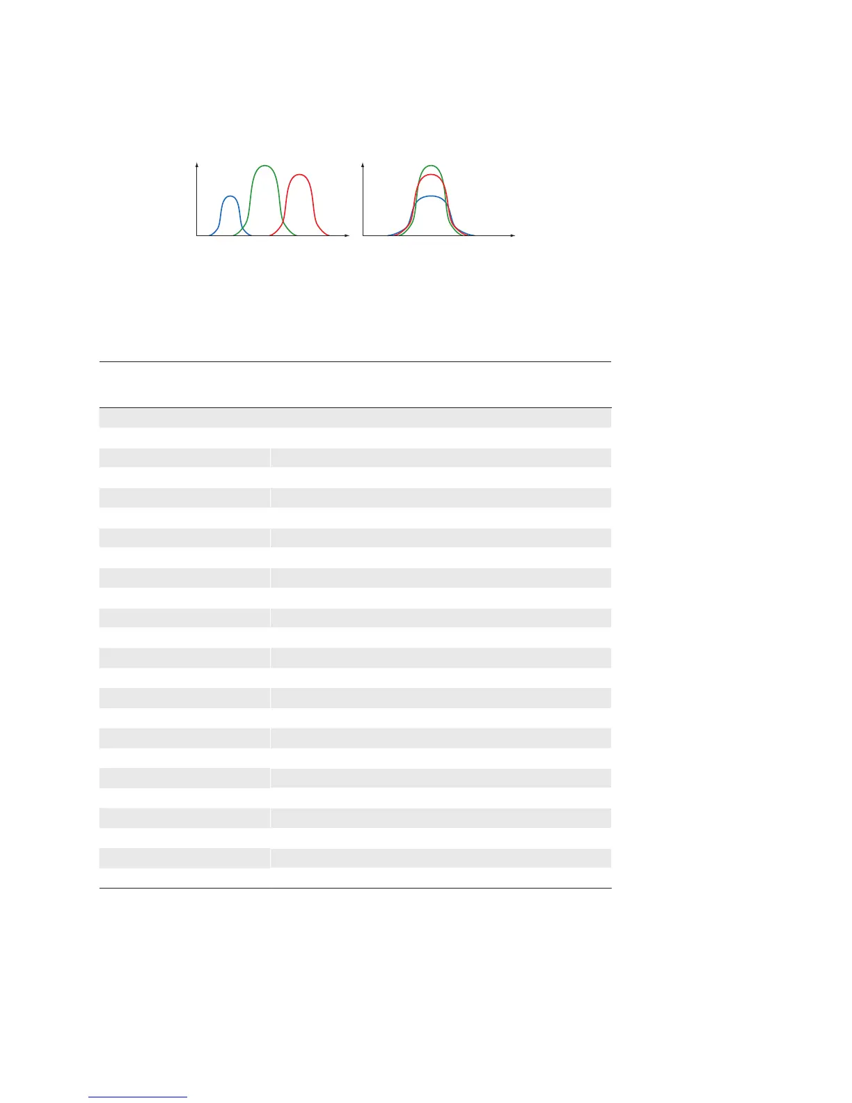 Here, the three color spectrums are balanced to a single white point. The correction fac-
