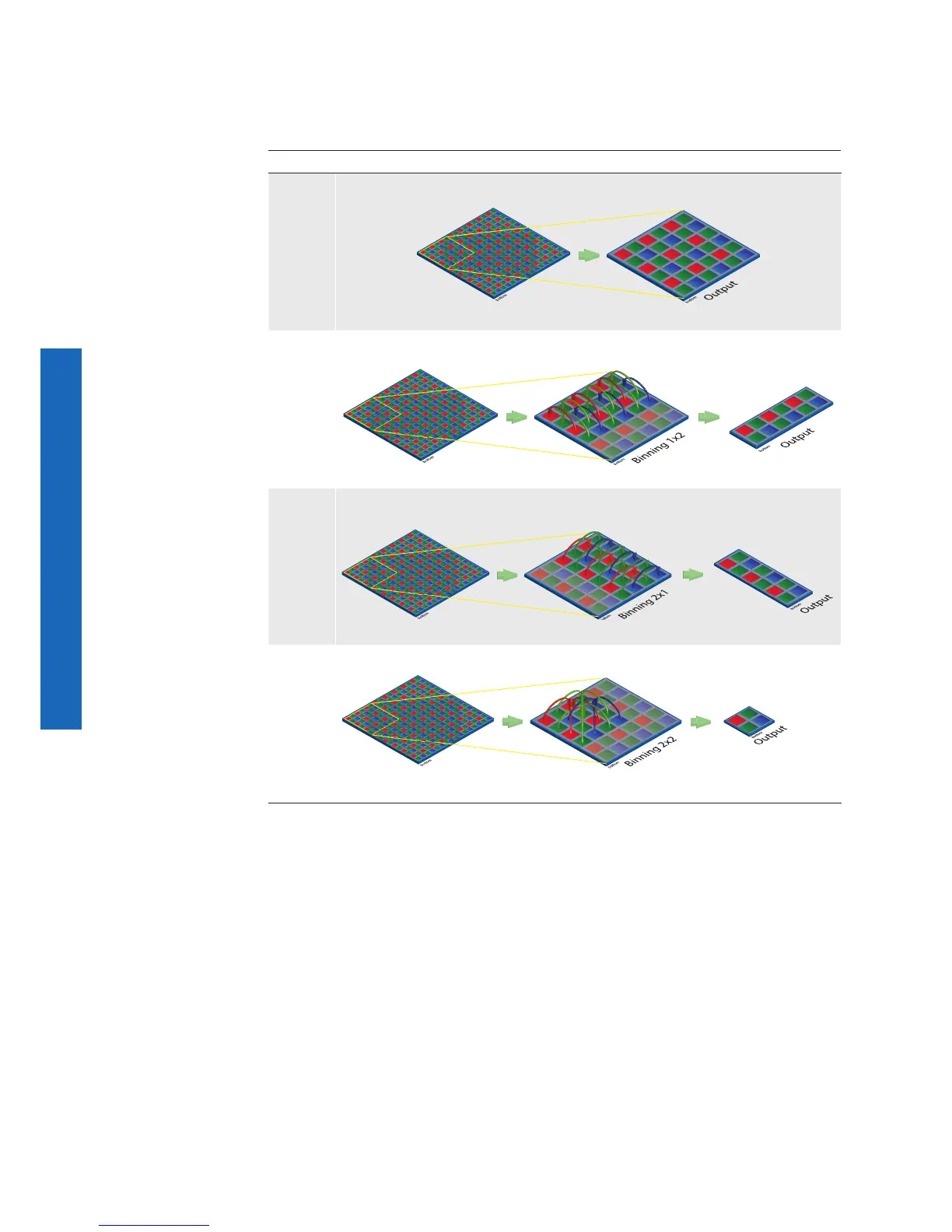 In the raw pixel formats (e.g. BayerRG8) the color values of neighboring pixels with the