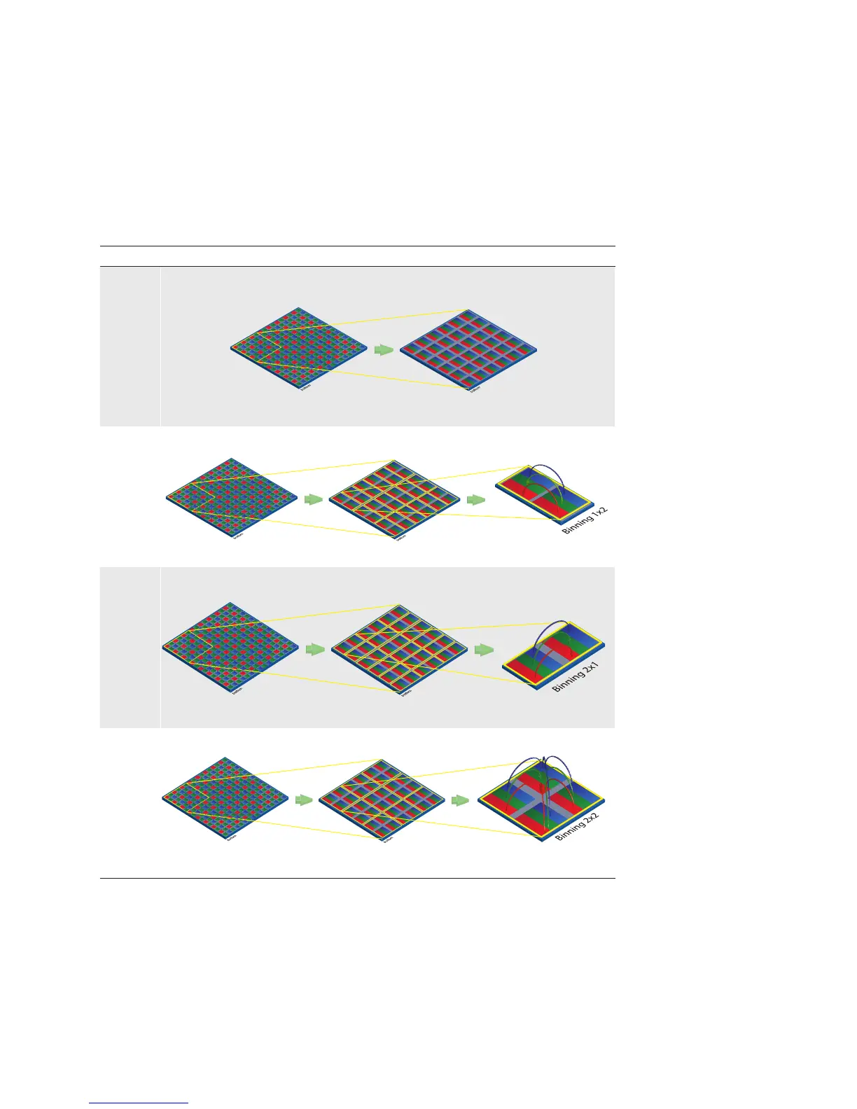 Color Binning is calculating on the camera (no higher frame rates) – The sensor does not