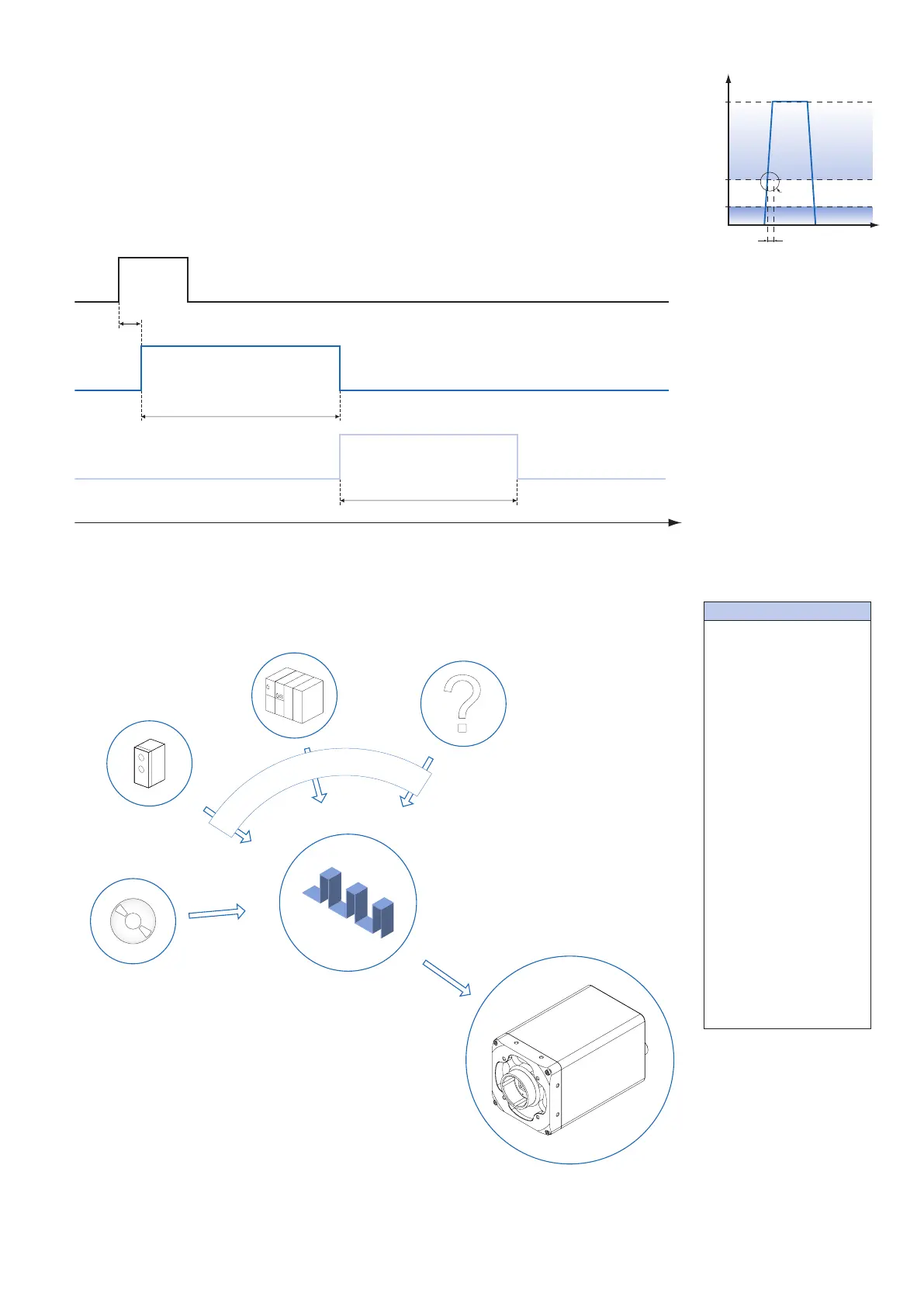 Trigger signals are used to synchronize the camera exposure and a machine cycle or, in