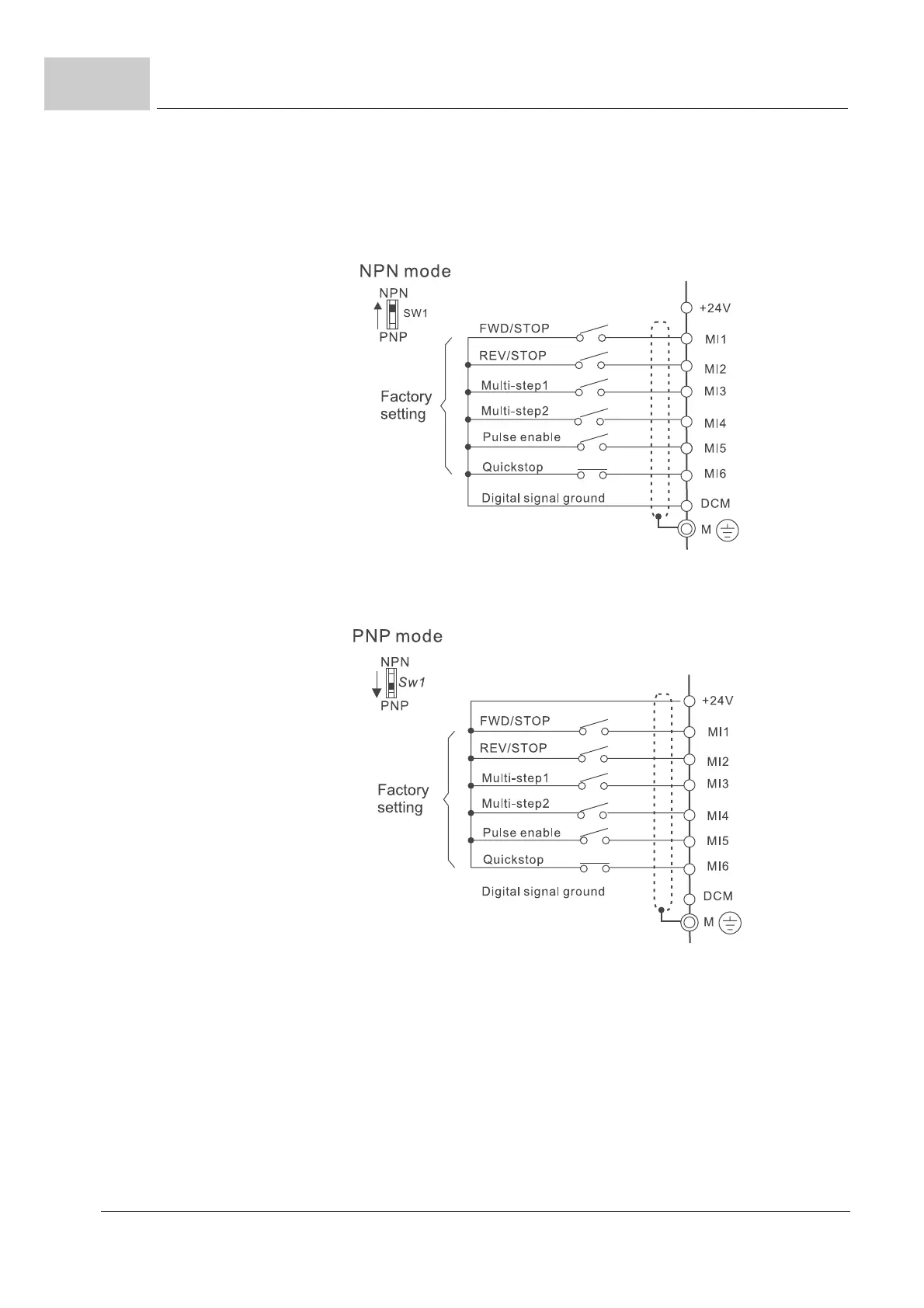 Figure 22: Connection NPN mode and PNP mode - without external power