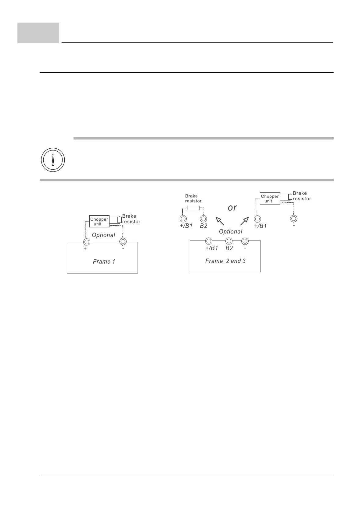 Optional use of chopper unit and braking resistor necessary (refer to ZB.1.1 Select a