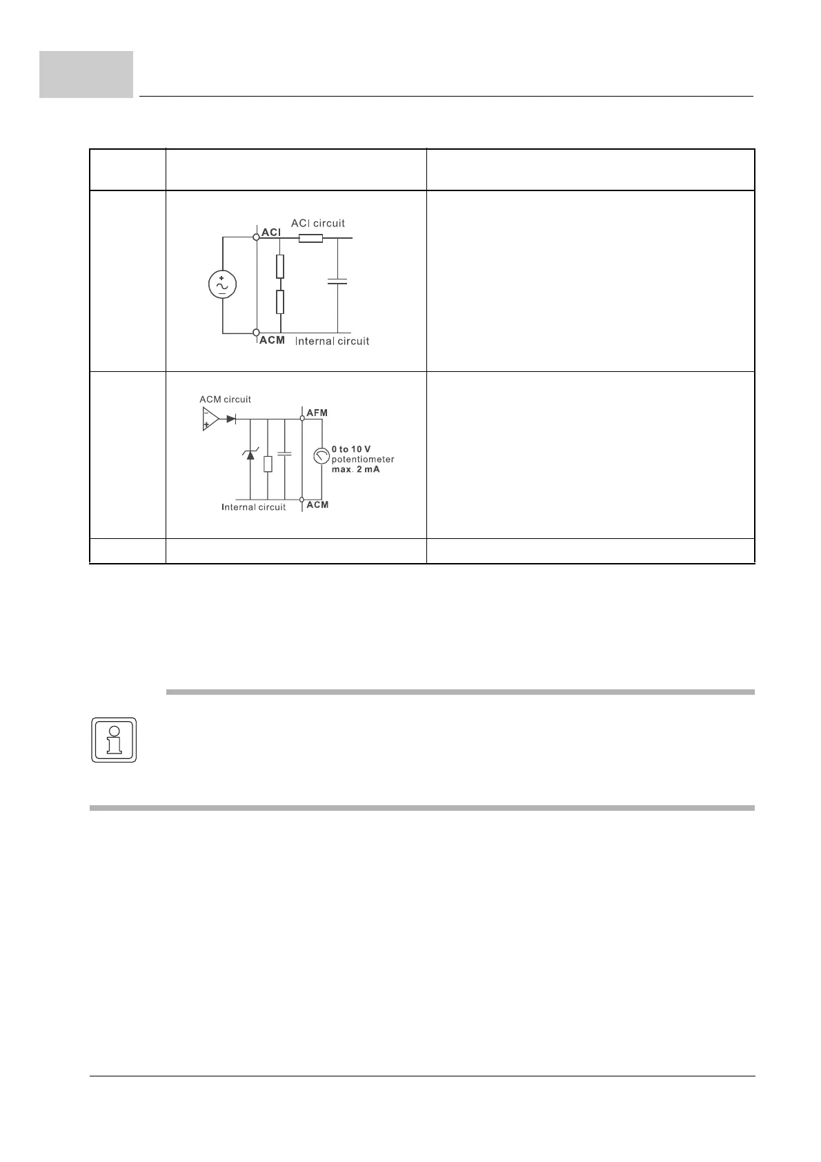 ACM Analog control signal (ground) Ground for AVI, ACI, AFM