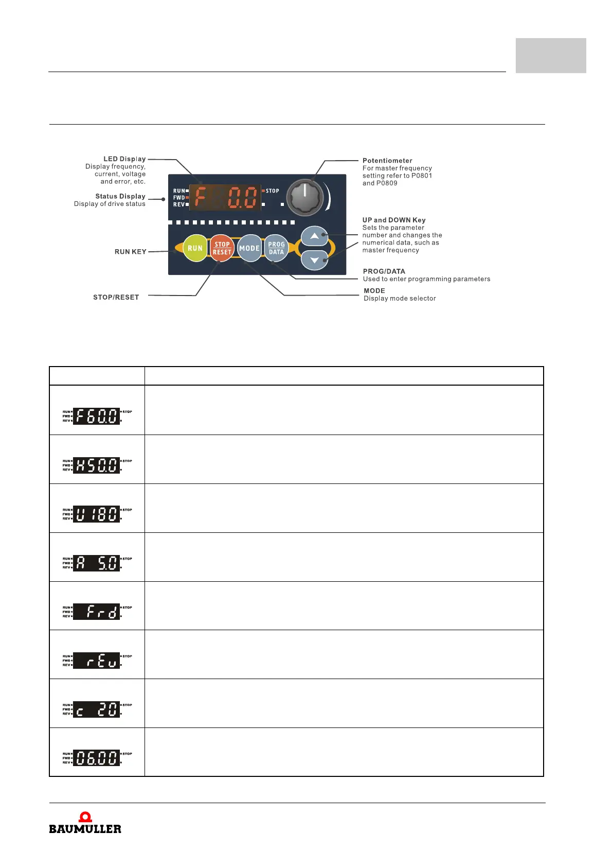 Displays the actual output frequency at terminals U/T1, V/T2, and W/T3.