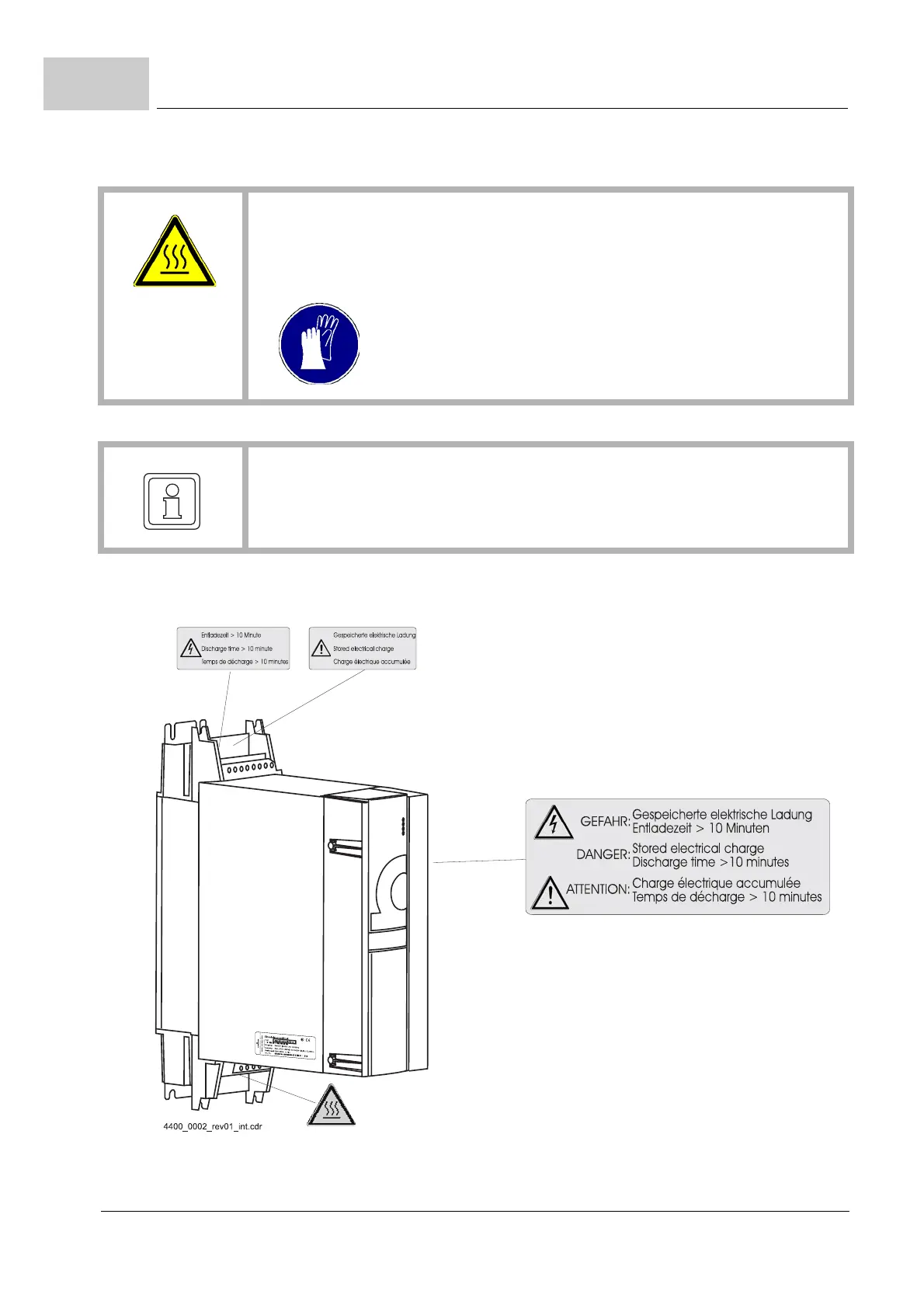 Risk of injury due to hot surface!