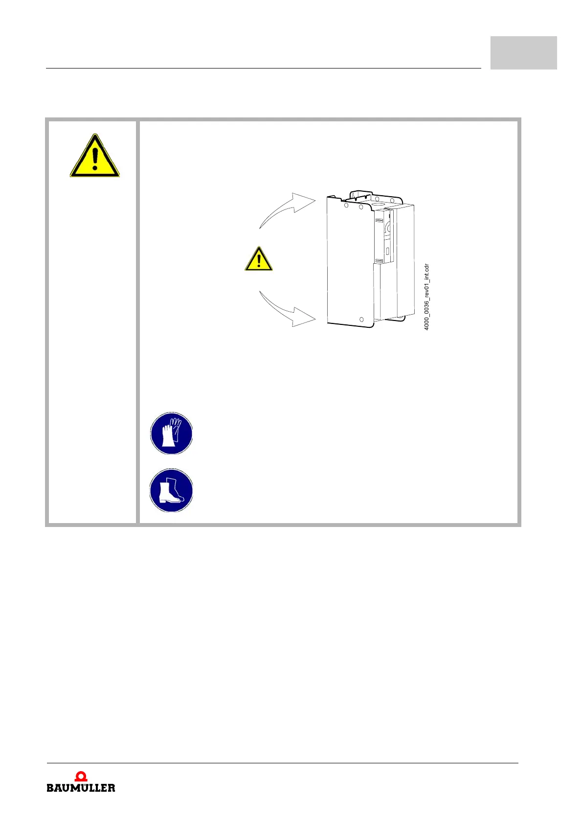 If the device is lifted with unprotected hands during mounting, palms or fingers can