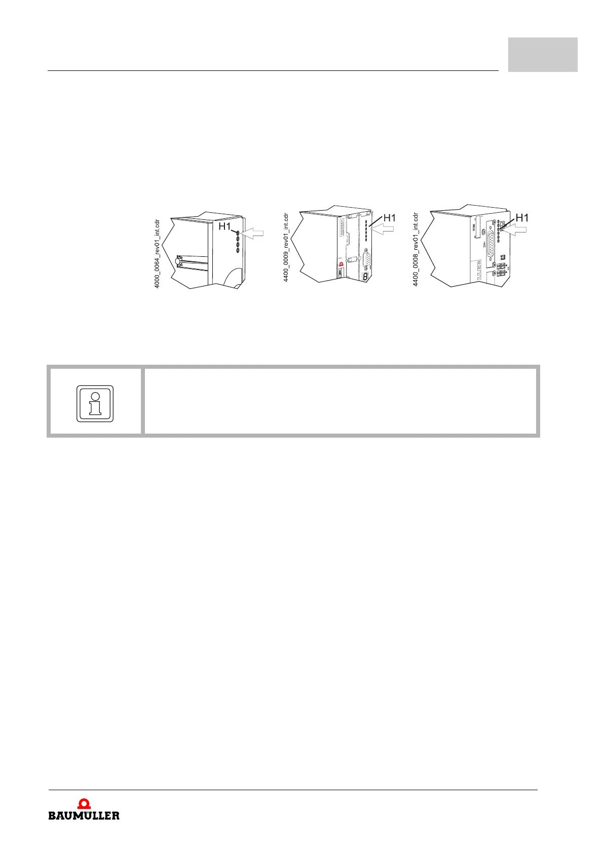 Operating status Both of the upper LEDs (H1 and H2) indicate the drive status.