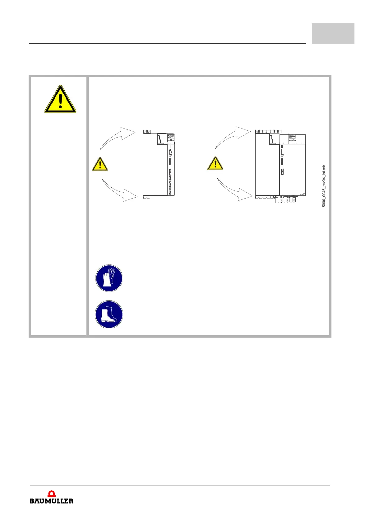 If the device is lifted with unprotected hands during mounting, palms or fingers can