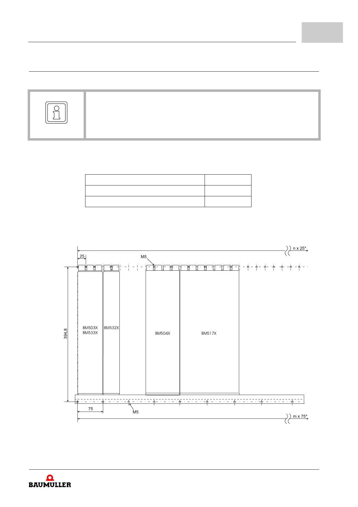 Figure 42: Drilling pattern with mounting rail for BM50XX-S, BM53XX-S, BM51XX-S
