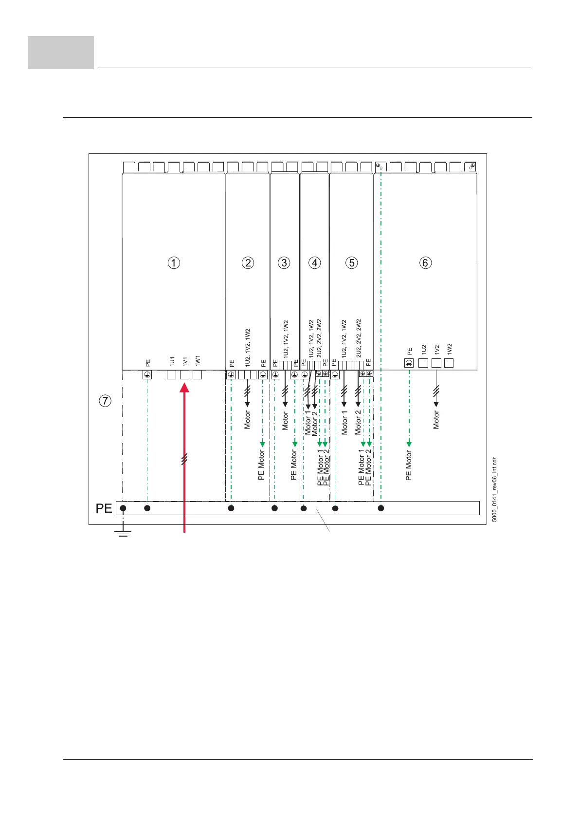 5 Double axis unit 75 mm: screw terminals PE, motor connector (1 x 6 pin)