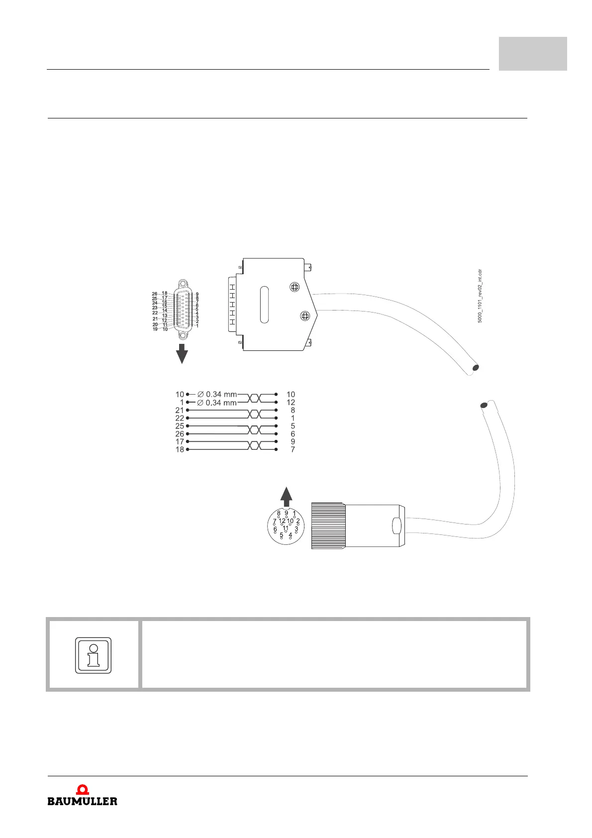 The connecting cable is available as accessory part from Baumüller Nürnberg GmbH.