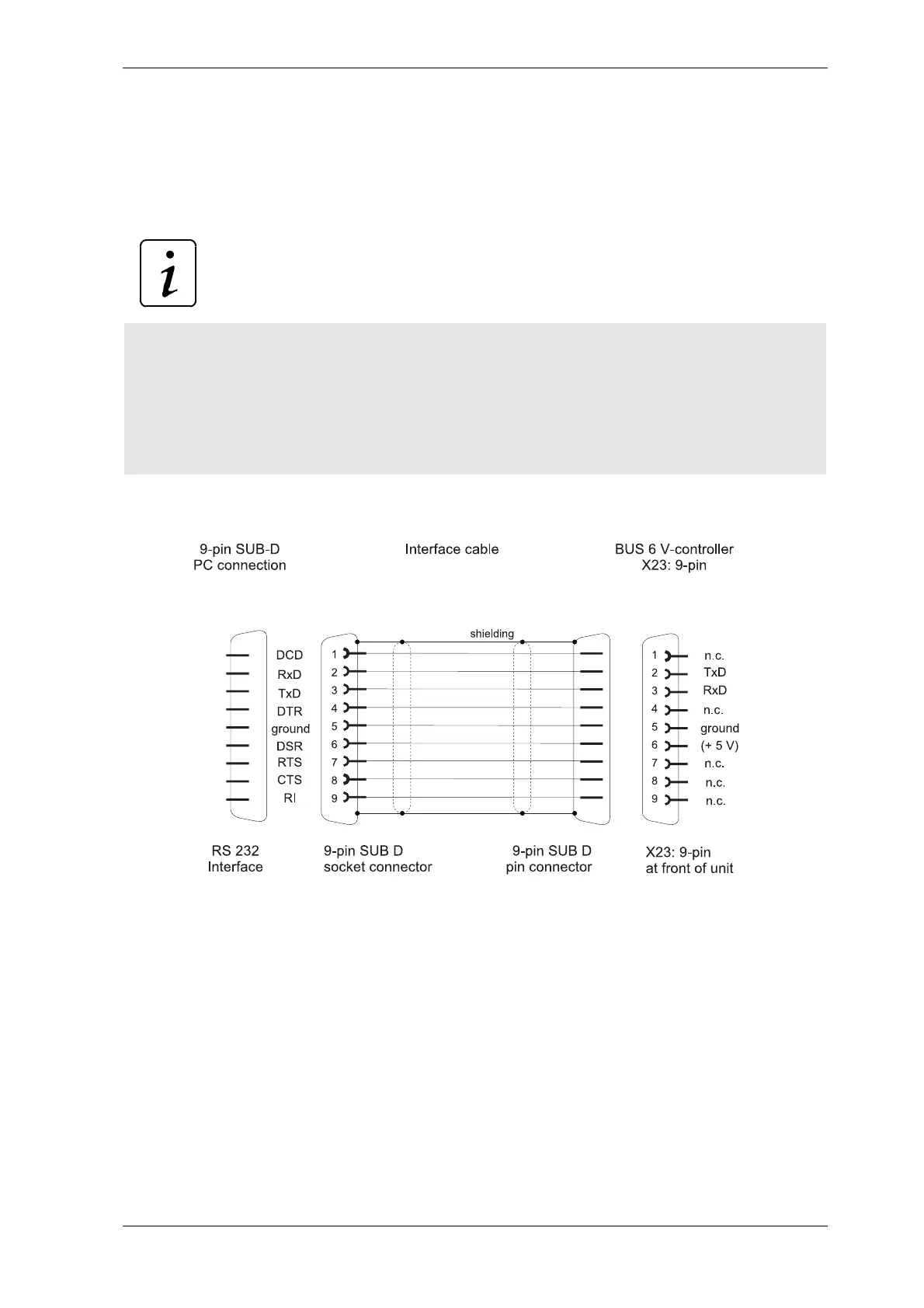 ! 9-pin PC connection (interface cable PC, part no. 00213283