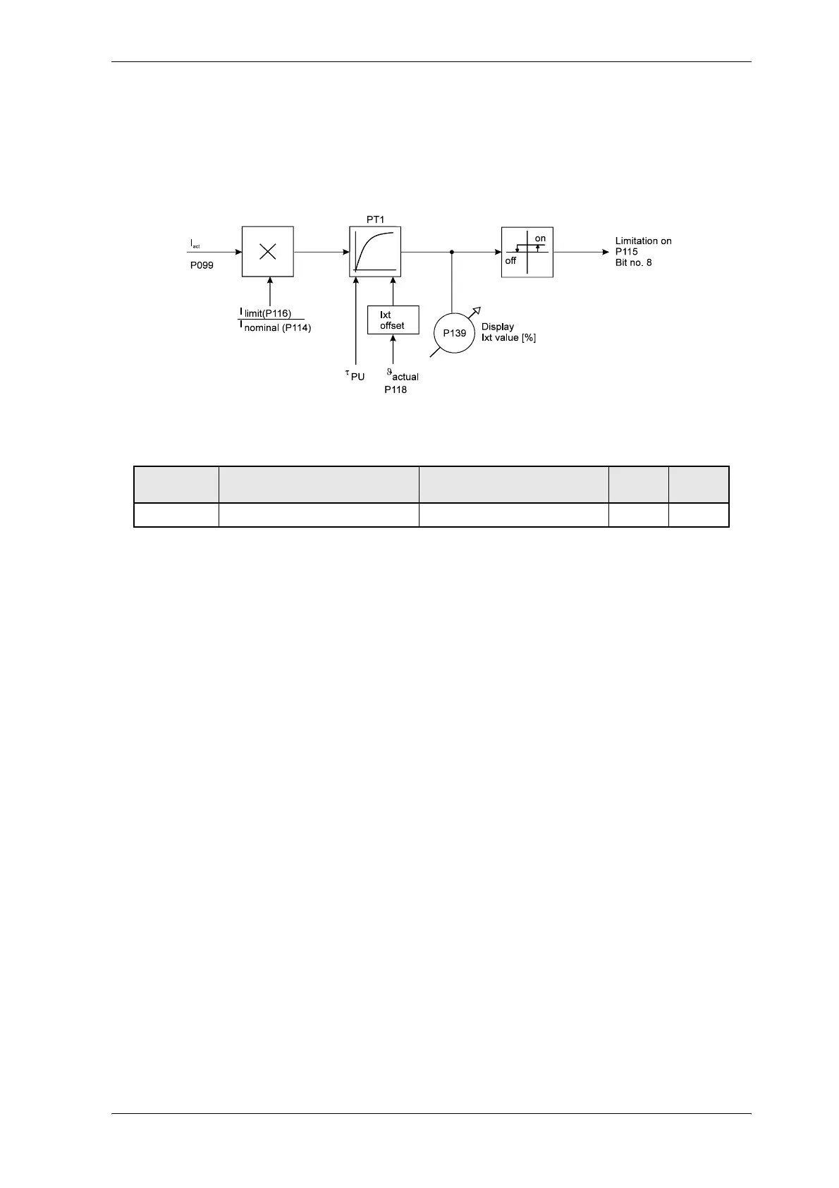 100 % follows a current limitation to nominal current (P114). Drops the Ixt value below 95%