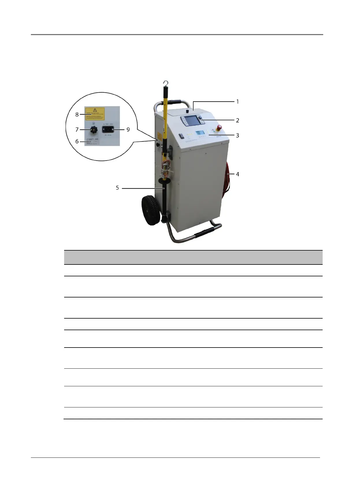 3 System control panel Is used to switch the system on and off and control the surge voltage generator