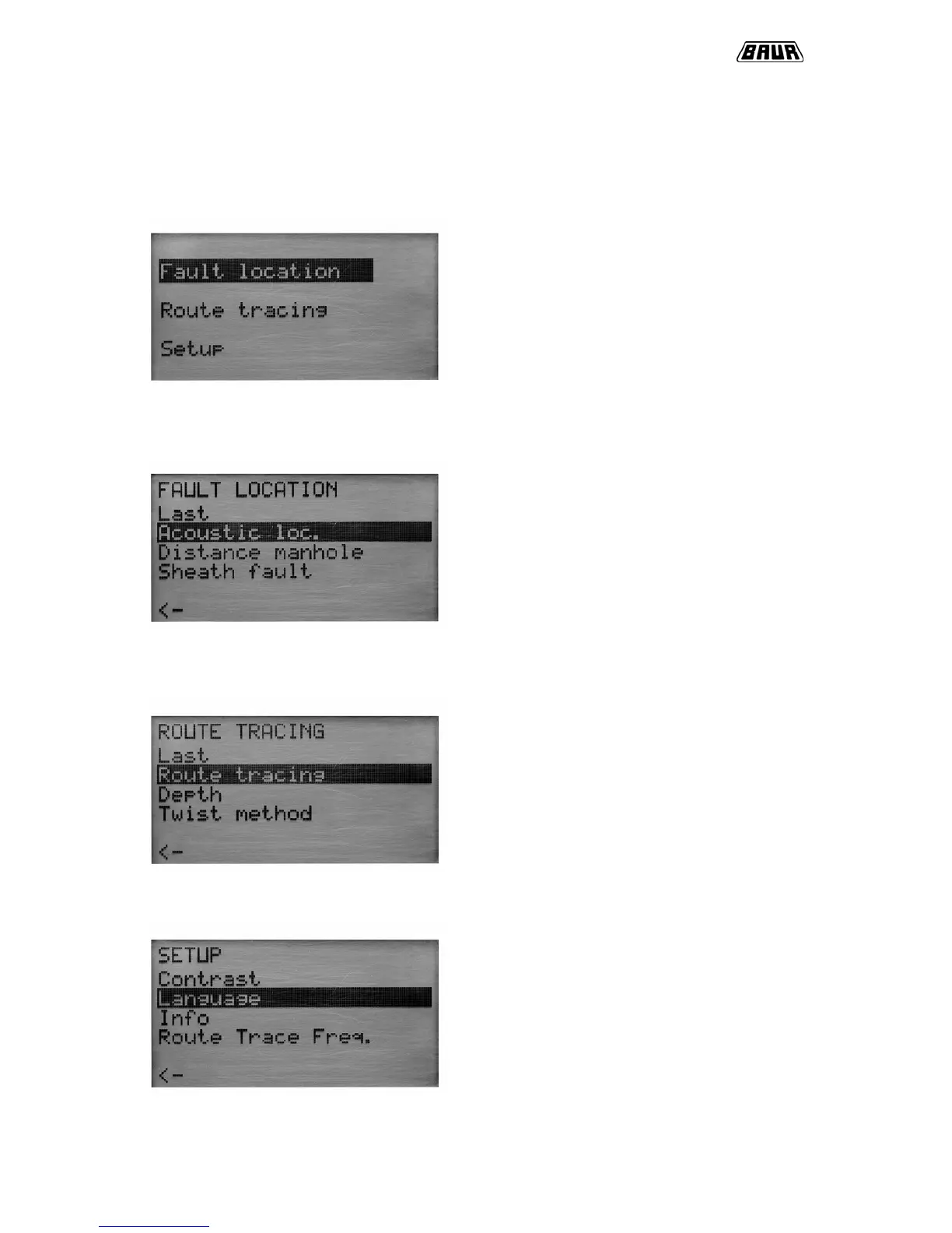 Baur UL 30 - Menu