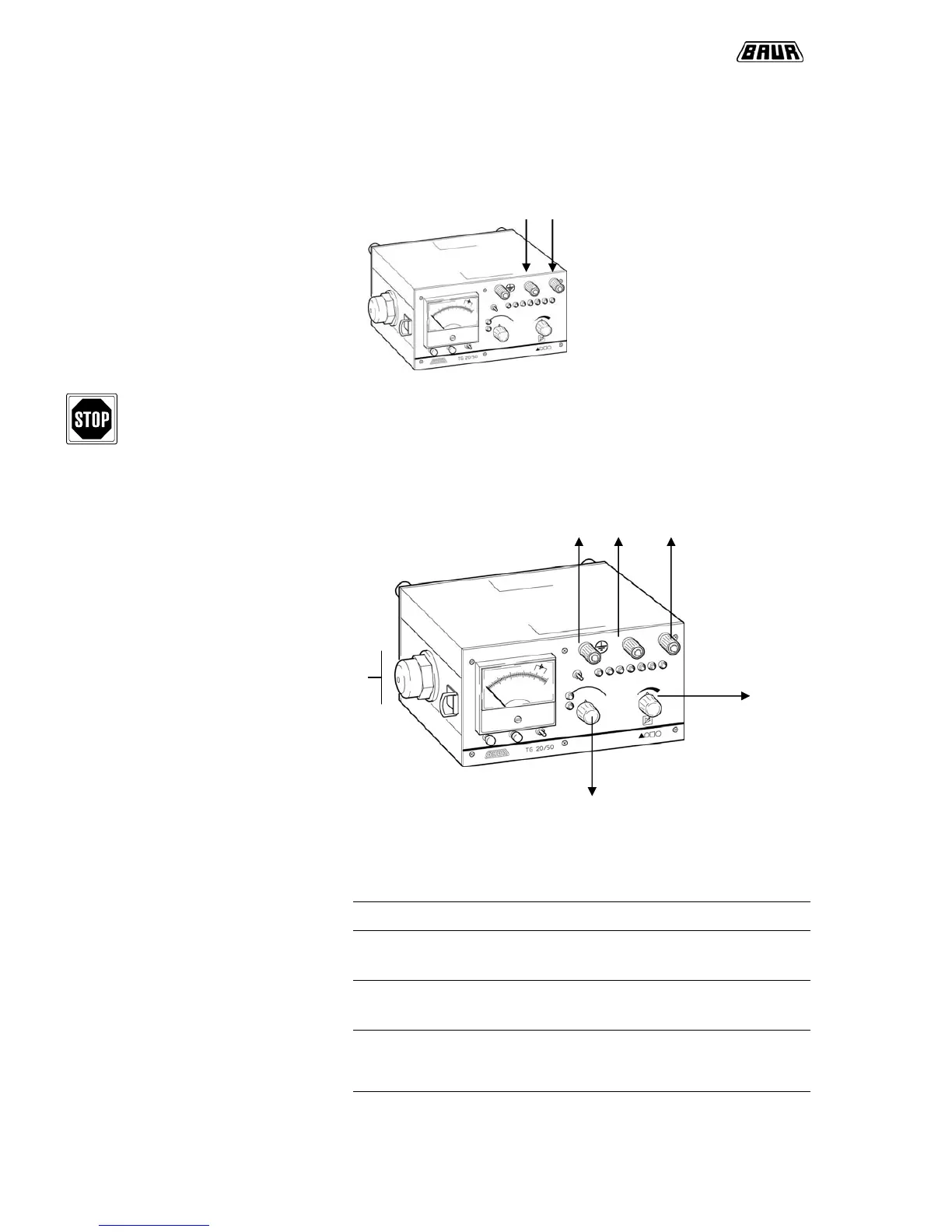 Connecting the TG20/50 unit is made either via the output sockets “output” (galvanic con.),