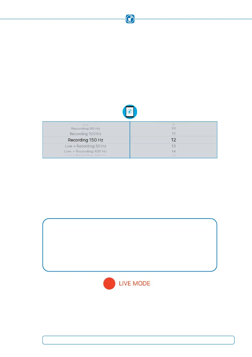 In live mode the data is only displayed but not recorded. However, it is possible •