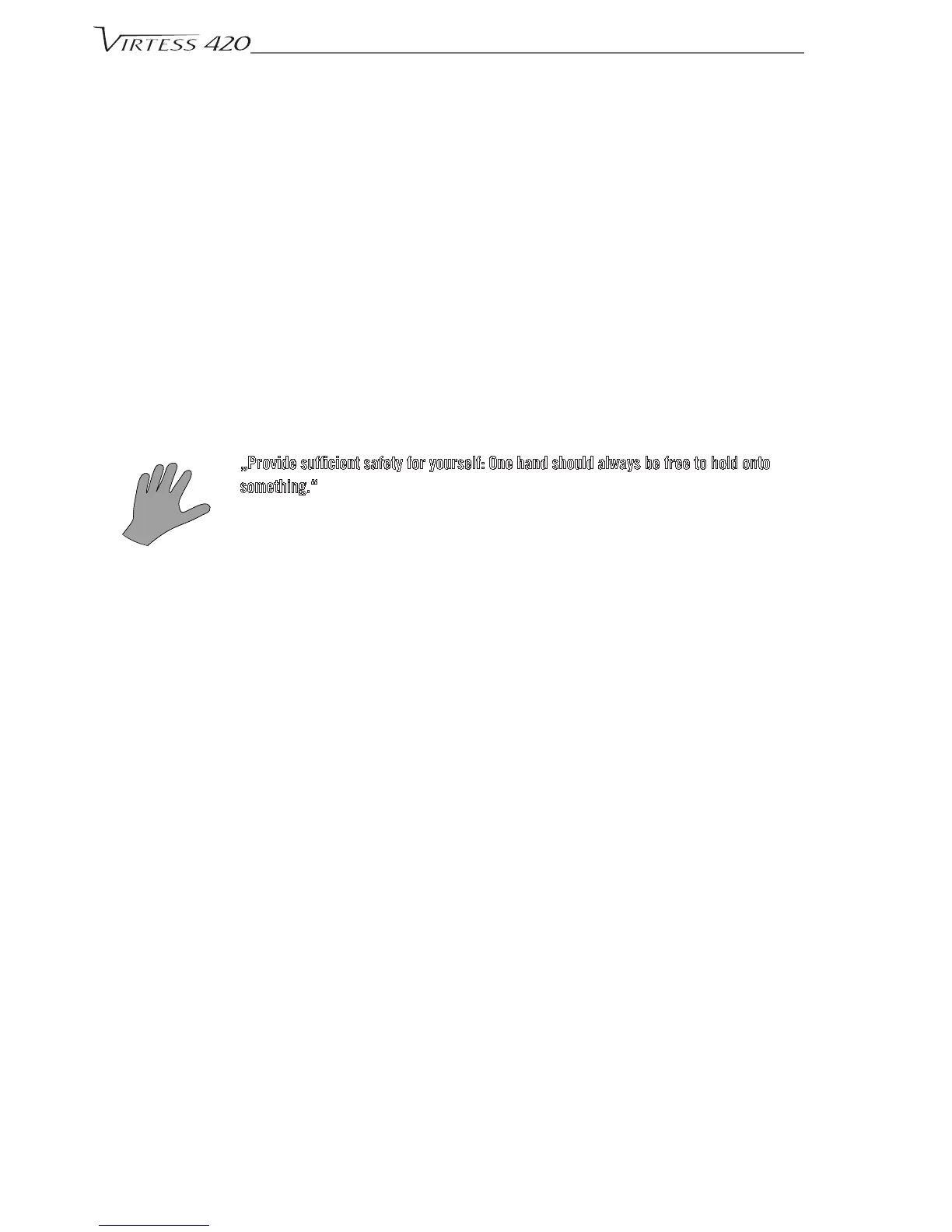„Provide sufcient safety for yourself: One hand should always be free to hold onto