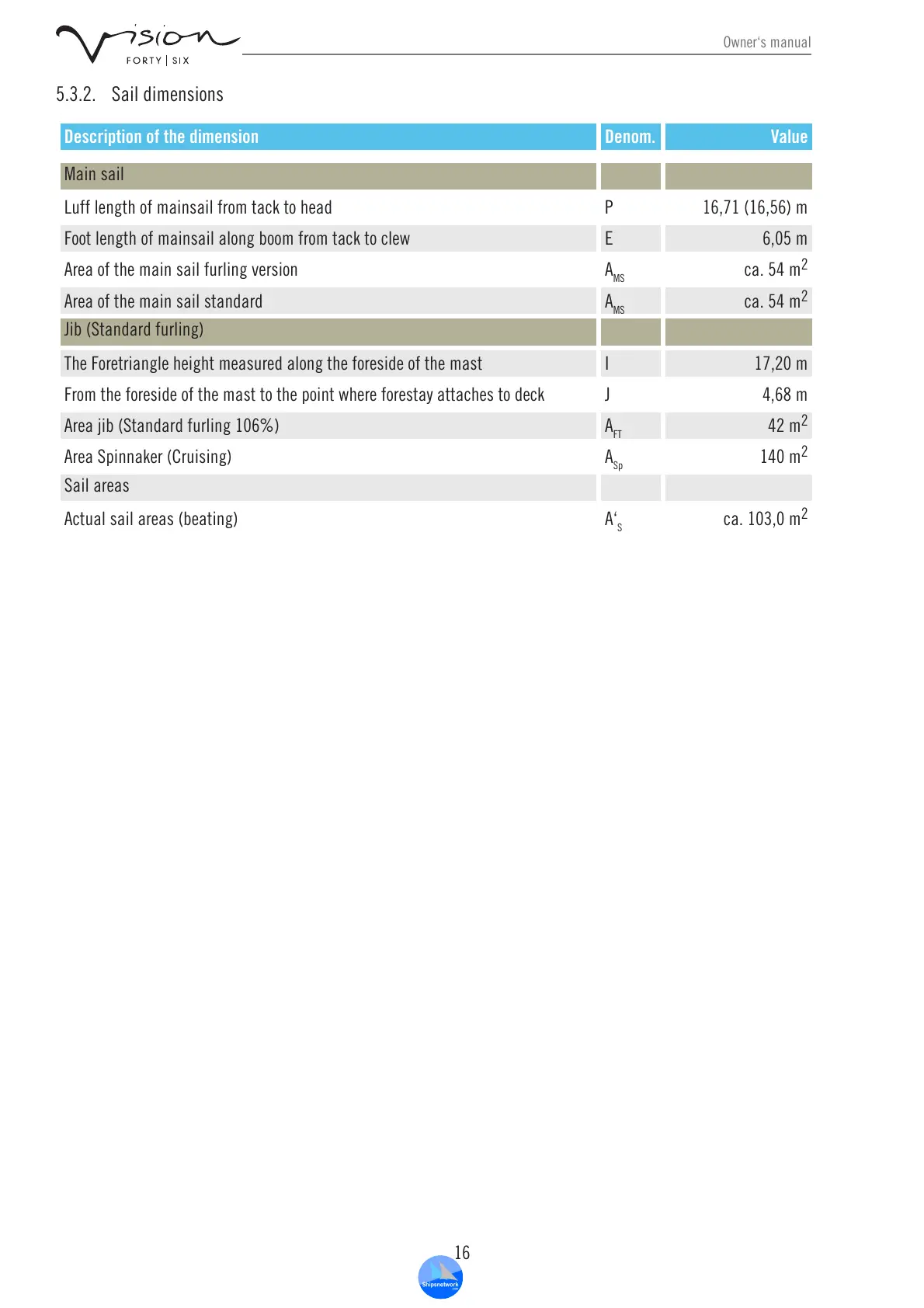 5.3.2. Sail dimensions