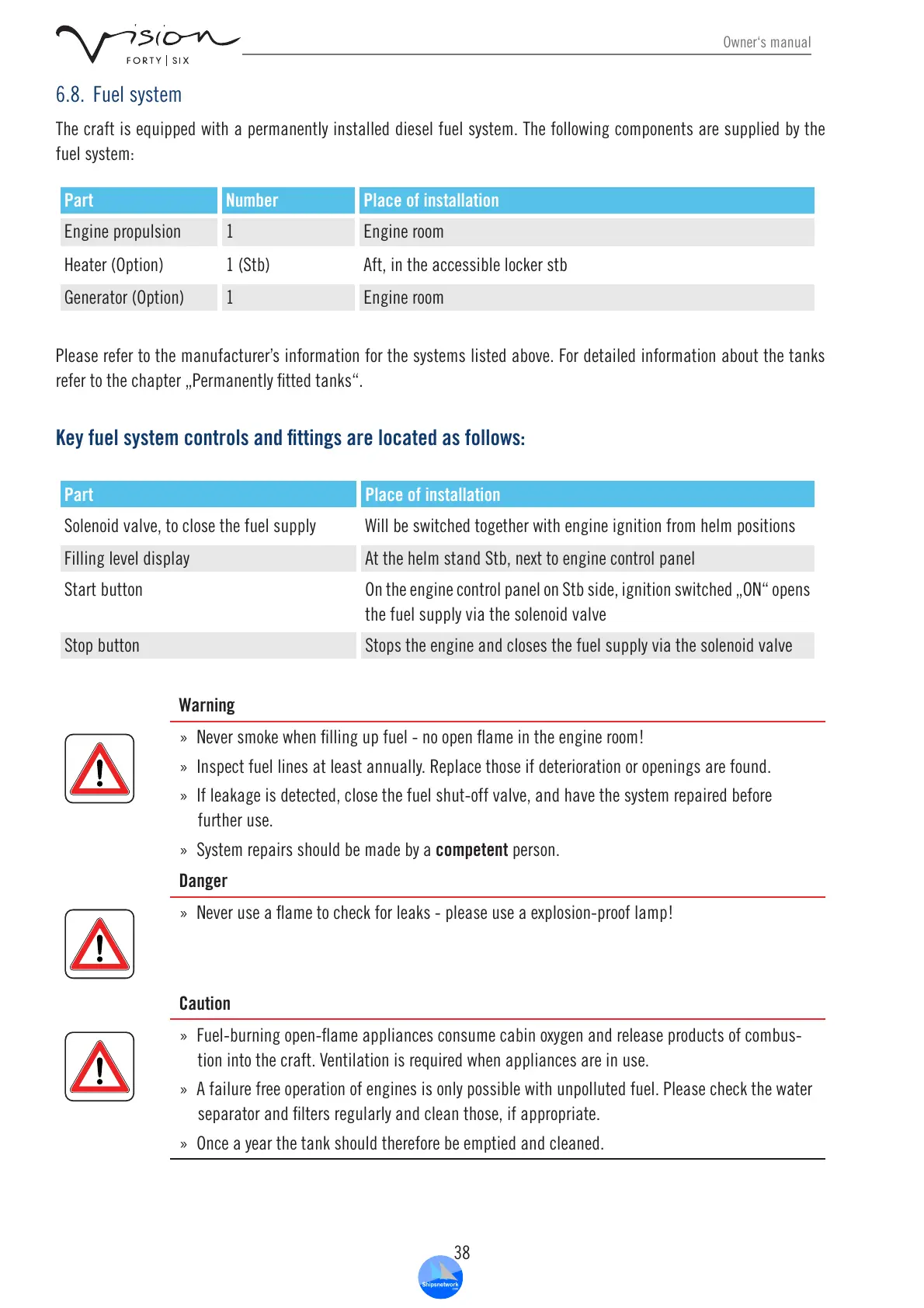 The craft is equipped with a permanently installed diesel fuel system. The following components are supplied by the