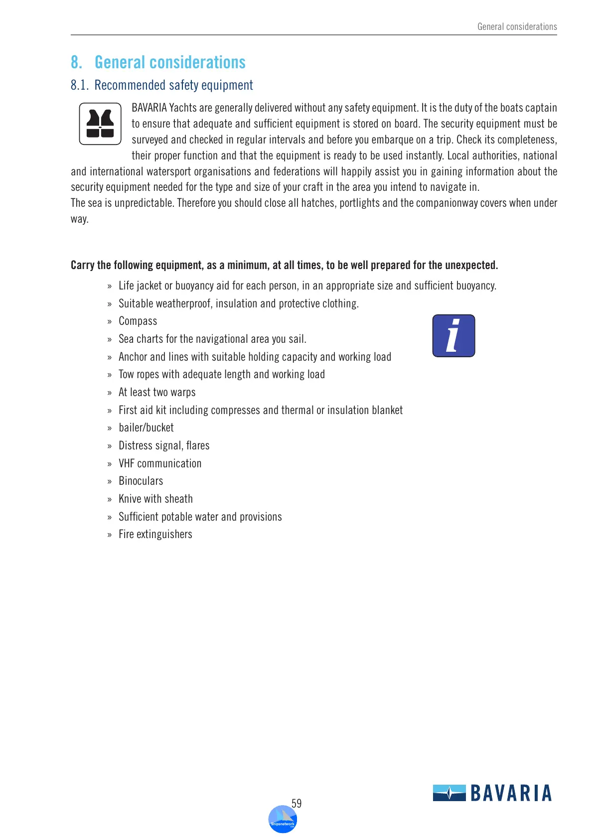 BAVARIAYachtsaregenerallydeliveredwithoutanysafetyequipment.Itisthedutyoftheboatscaptain