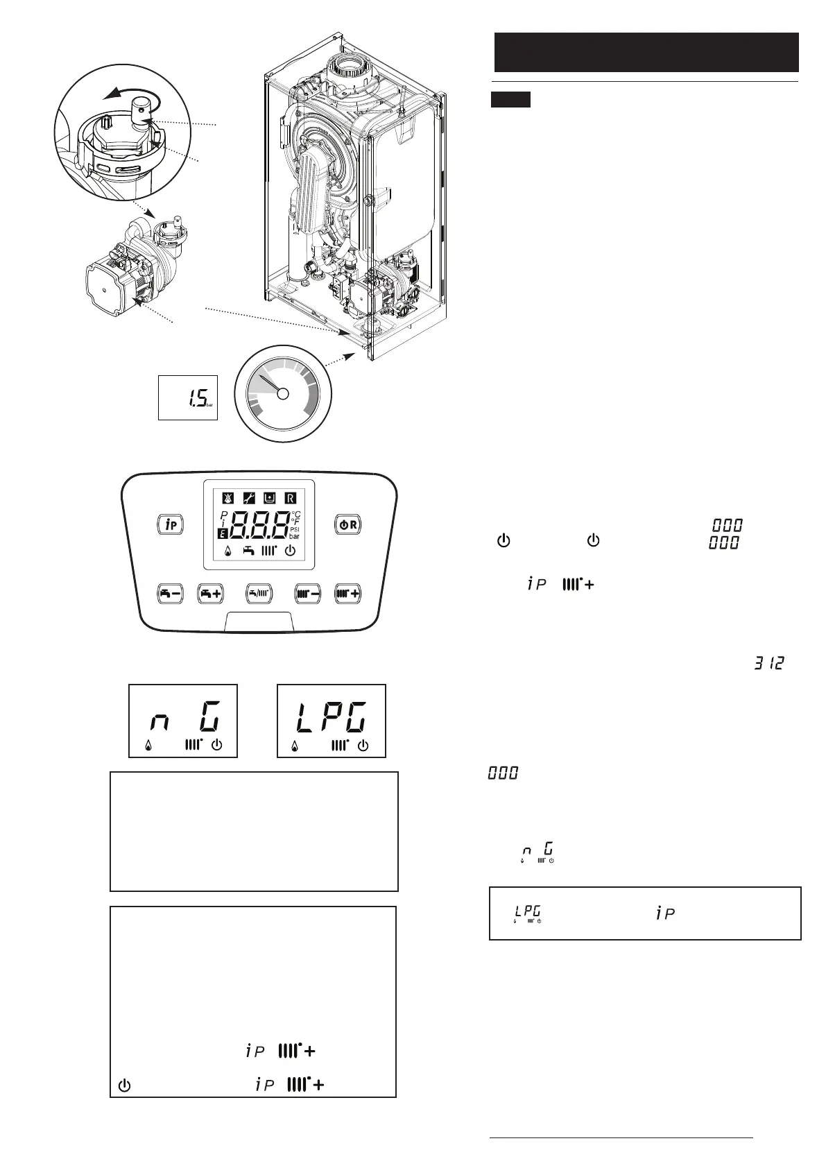 minutes to check the gas type (N.G. or Propane L.P.G.). The boiler