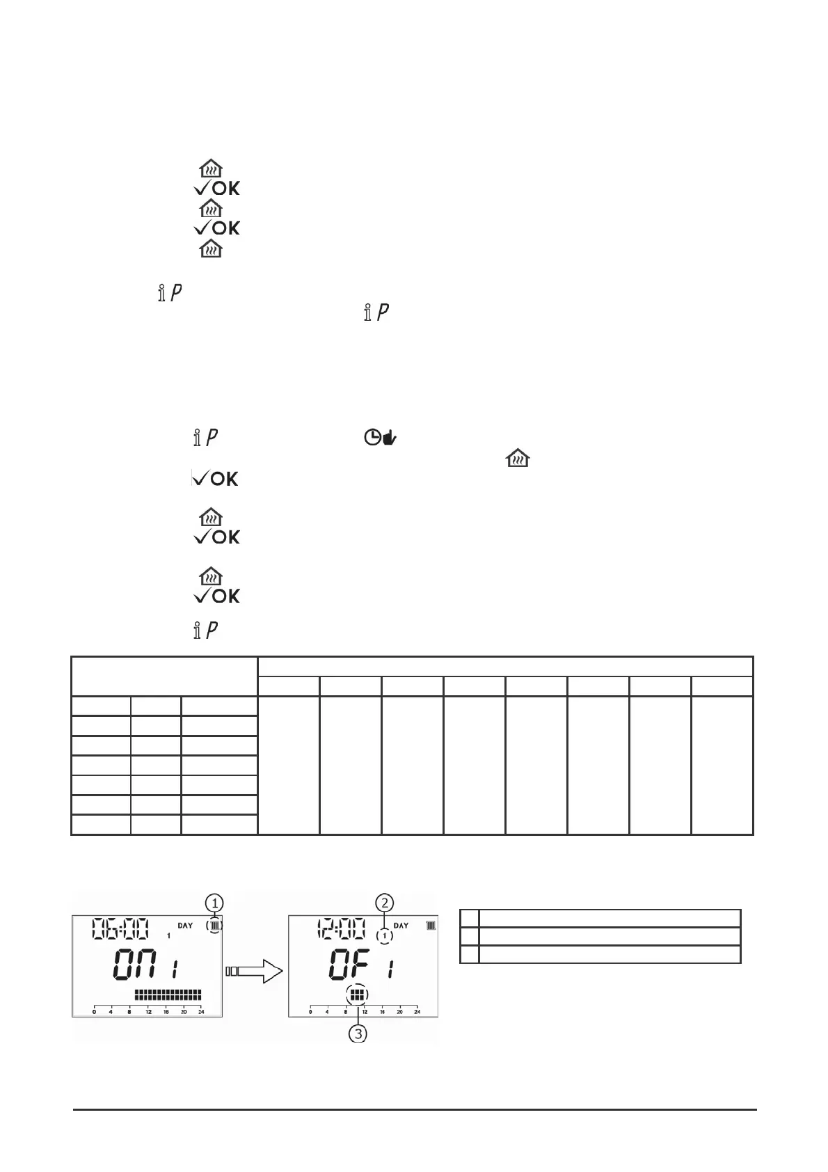 2. Scegliere un giorno della settimana (1...7) agendo ripetutamente sui tasti +/-