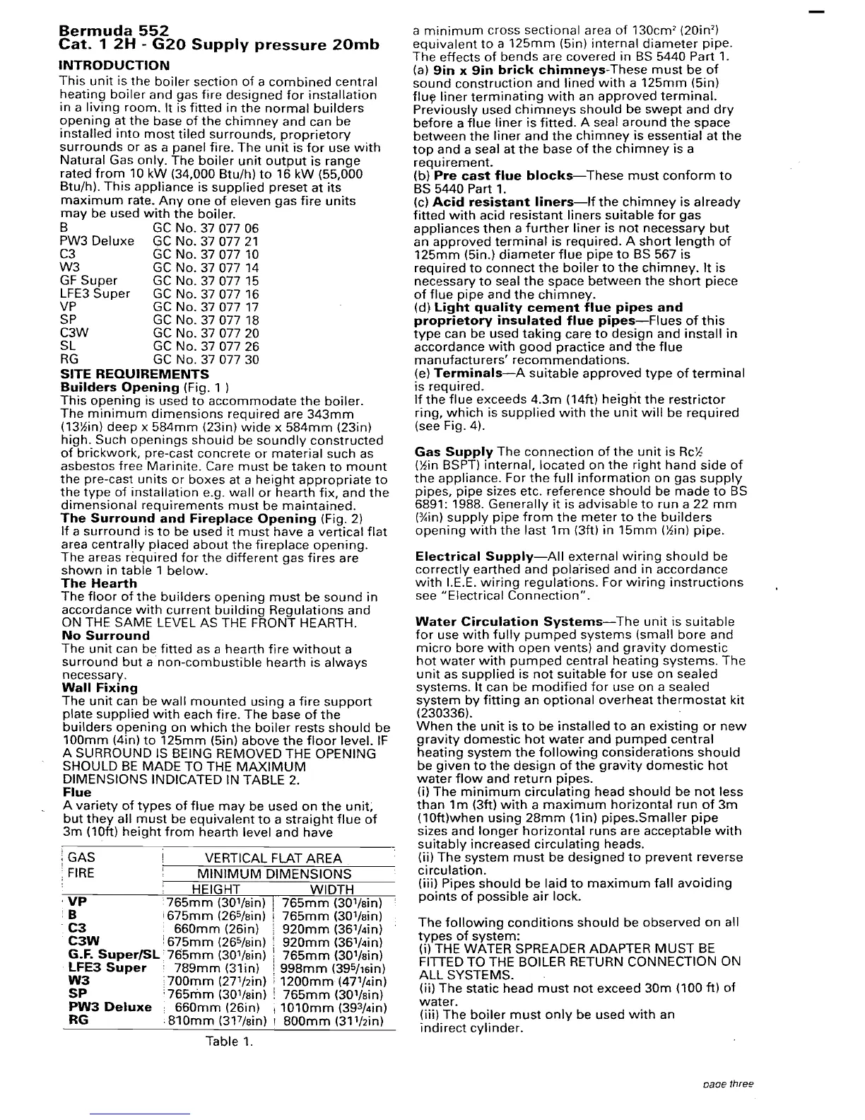 Baxi Bermuda 552 - INTRODUCTION; Gas Supply; Water Circulation Systems