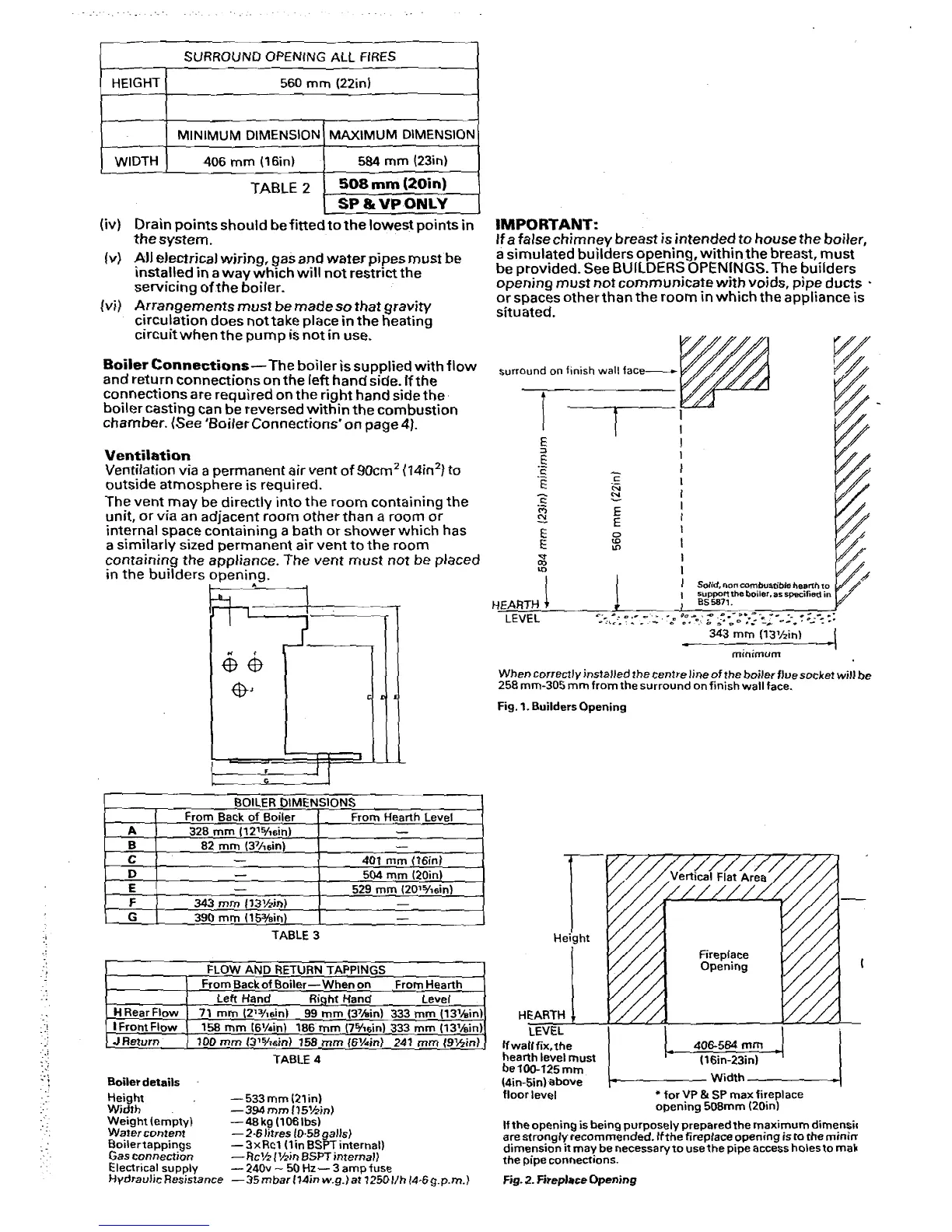 Baxi Bermuda 552 - Boiler Connections; Ventilation; Surround Opening All Fires; Boiler Details