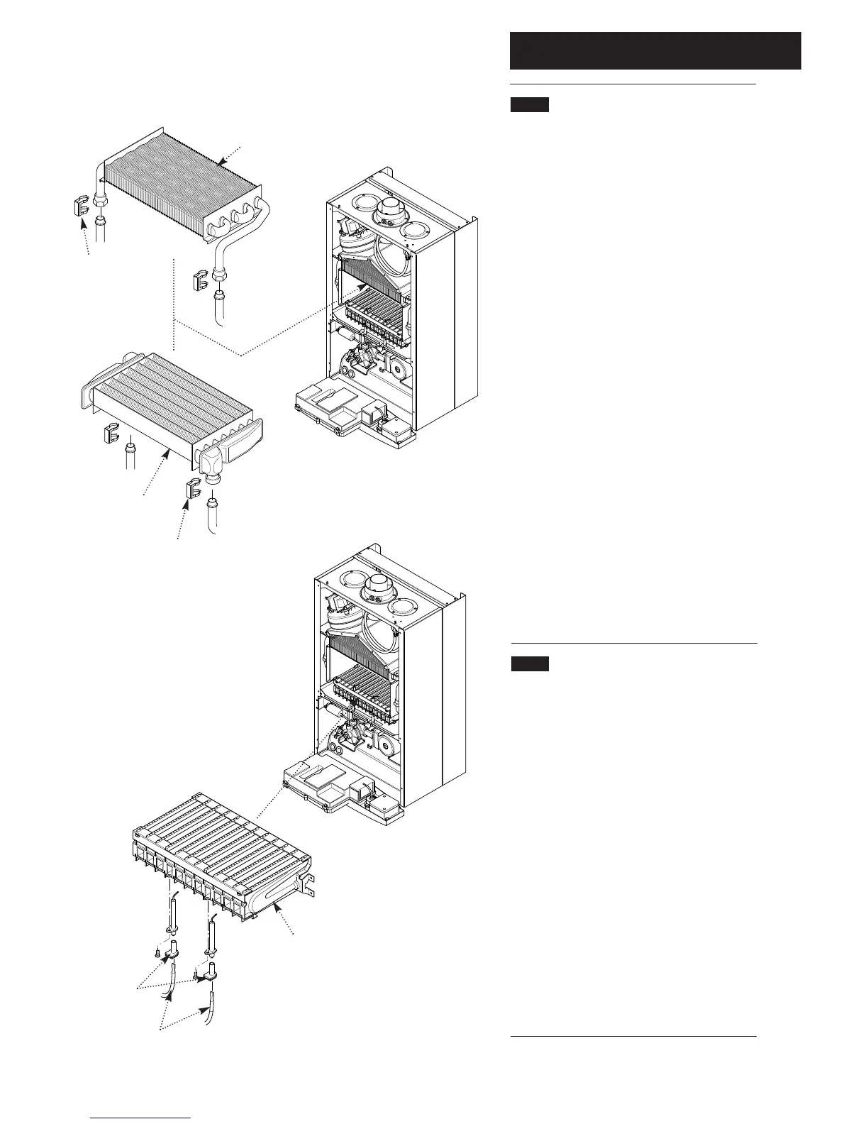7. Lift the heat exchanger to disconnect the flow