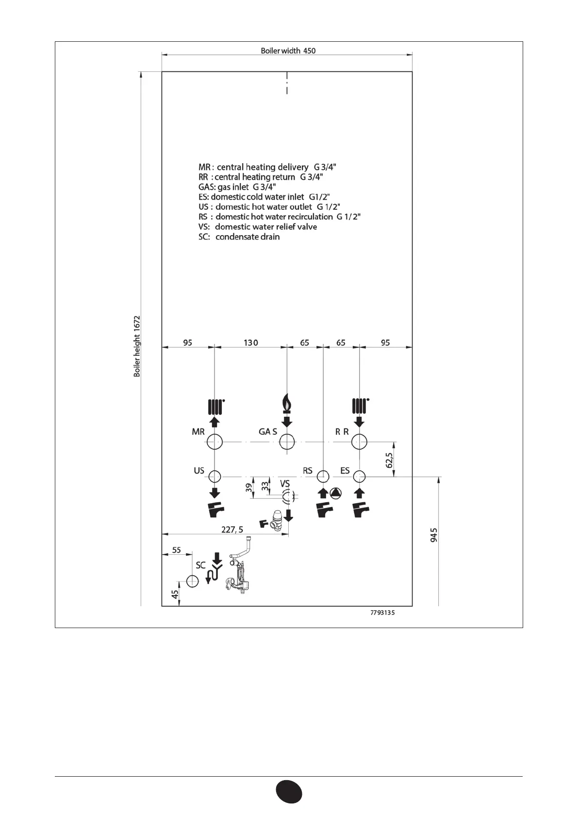 Figure 2: Combi unit connections template