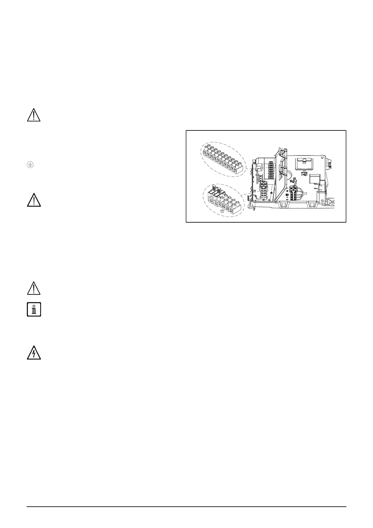 and access terminal blocks, used for the electrical connections, after removing the protective cover. The 2 A fast-blowing fuses are