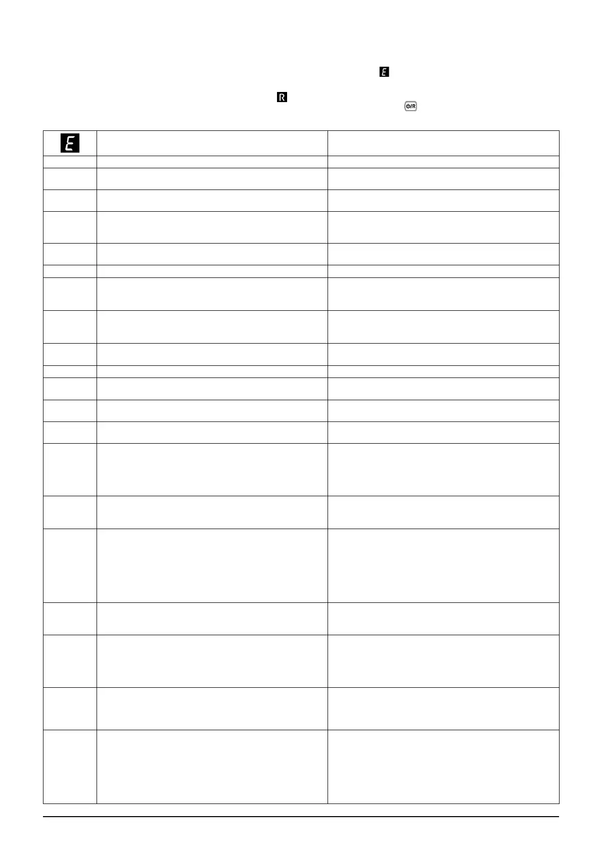 Неисправности, отражаемые на дисплее, определяются при помощи символа и номера (код ошибки). Полный список