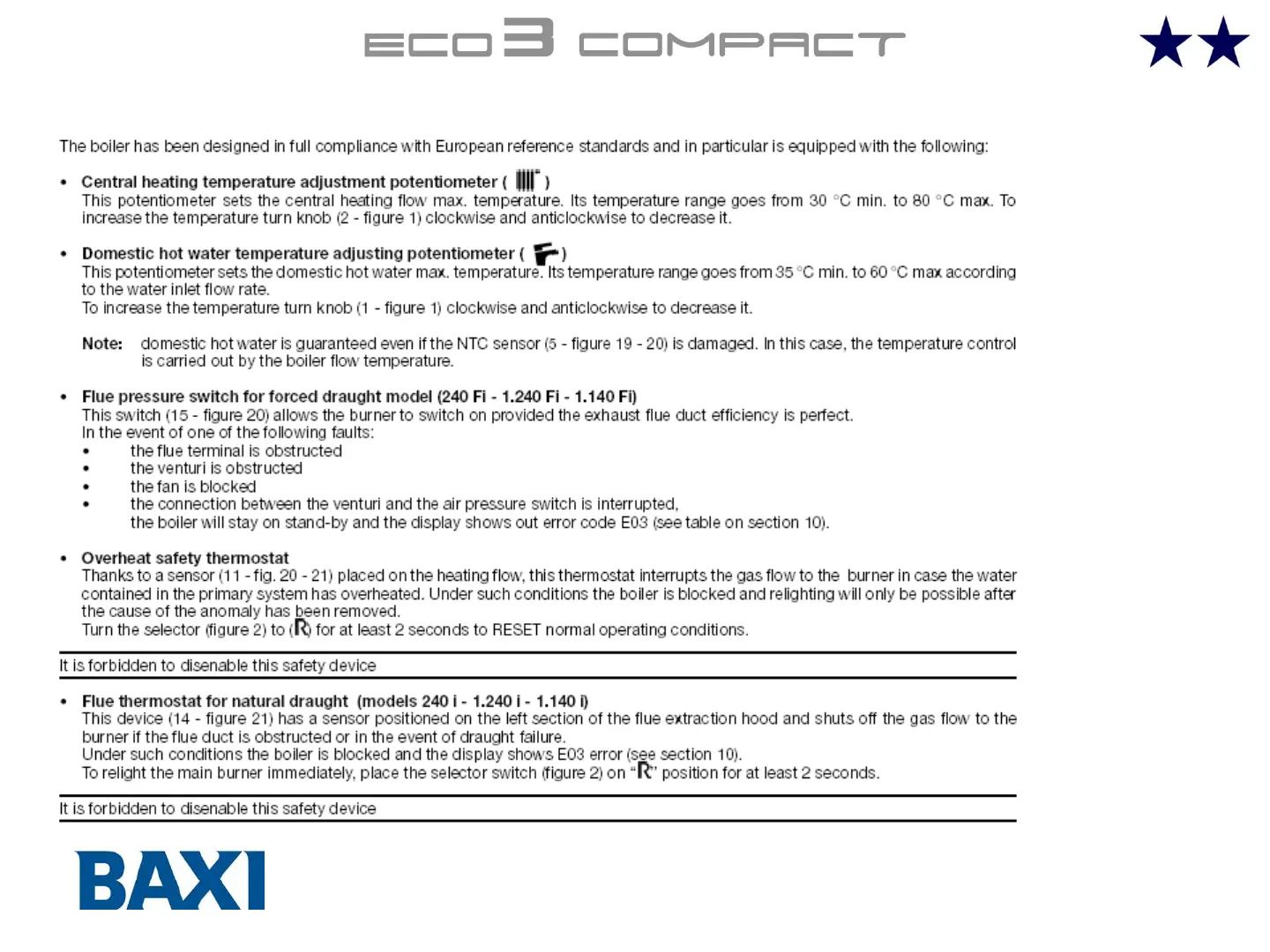 Baxi ECO3 COMPACT - Control and Operation Devices